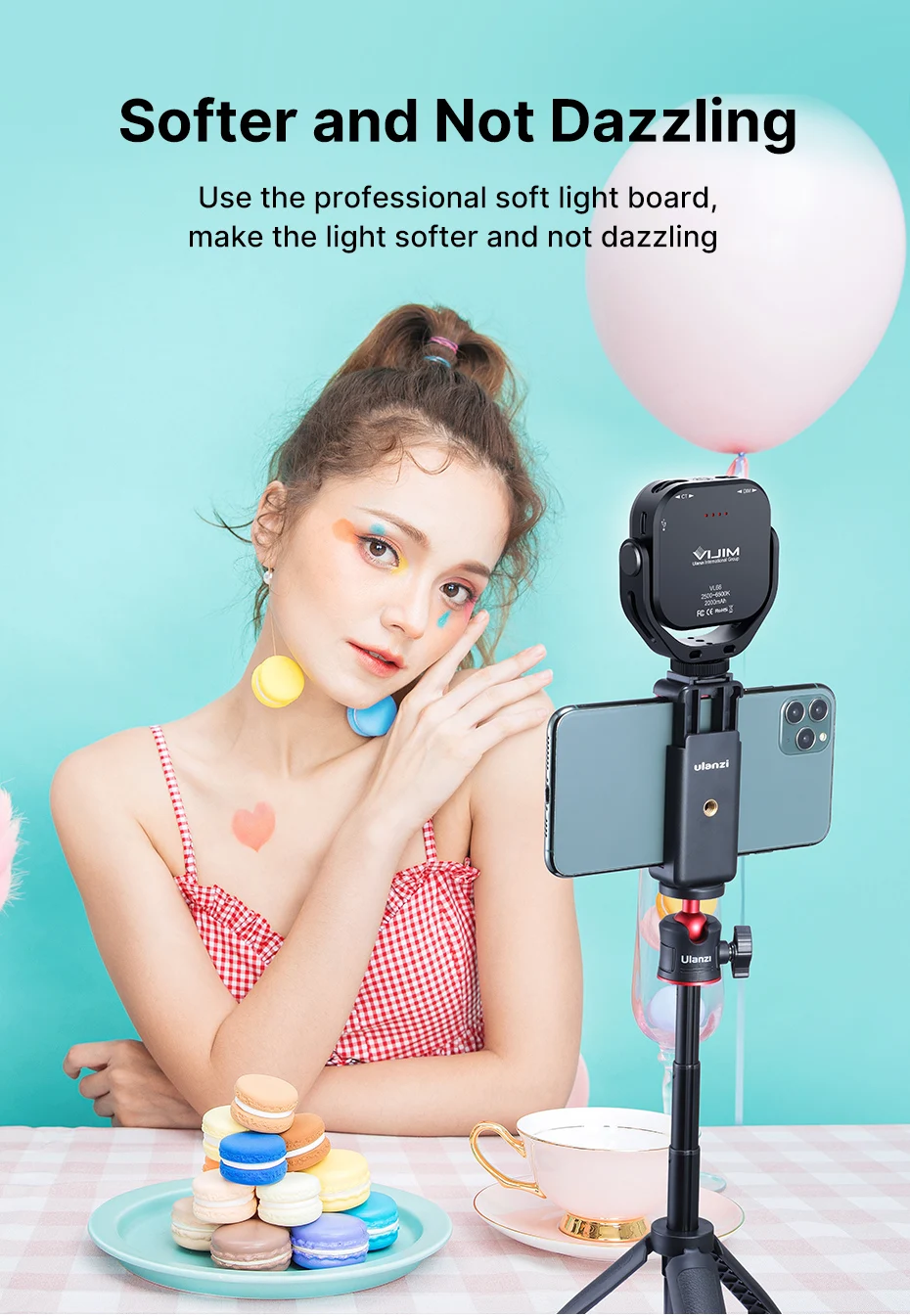 【Mini luces de vídeo LED profesionales】La Luz de vídeo LED VL66 adopta 66 cuentas LED de alta reproducción de color, ángulo de iluminación de hasta 120 °, el brillo puede alcanzar los 60 °, la cabina CRI95 más moderna con un color perfecto de la luz solar y garantiza que su luz sea natural y realista. Se aplica a RETRATOS, NIÑOS, grabación de video y nuevas fotografías, etc.