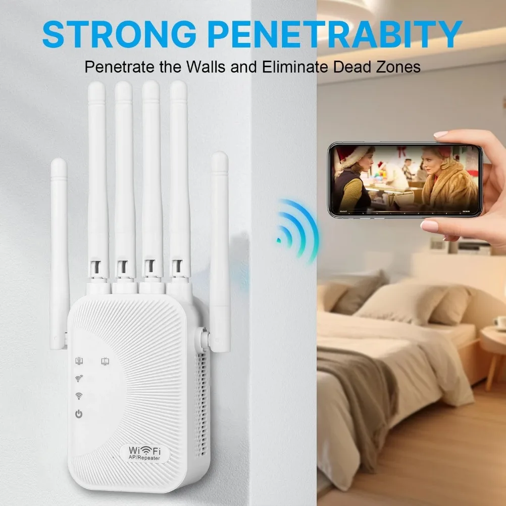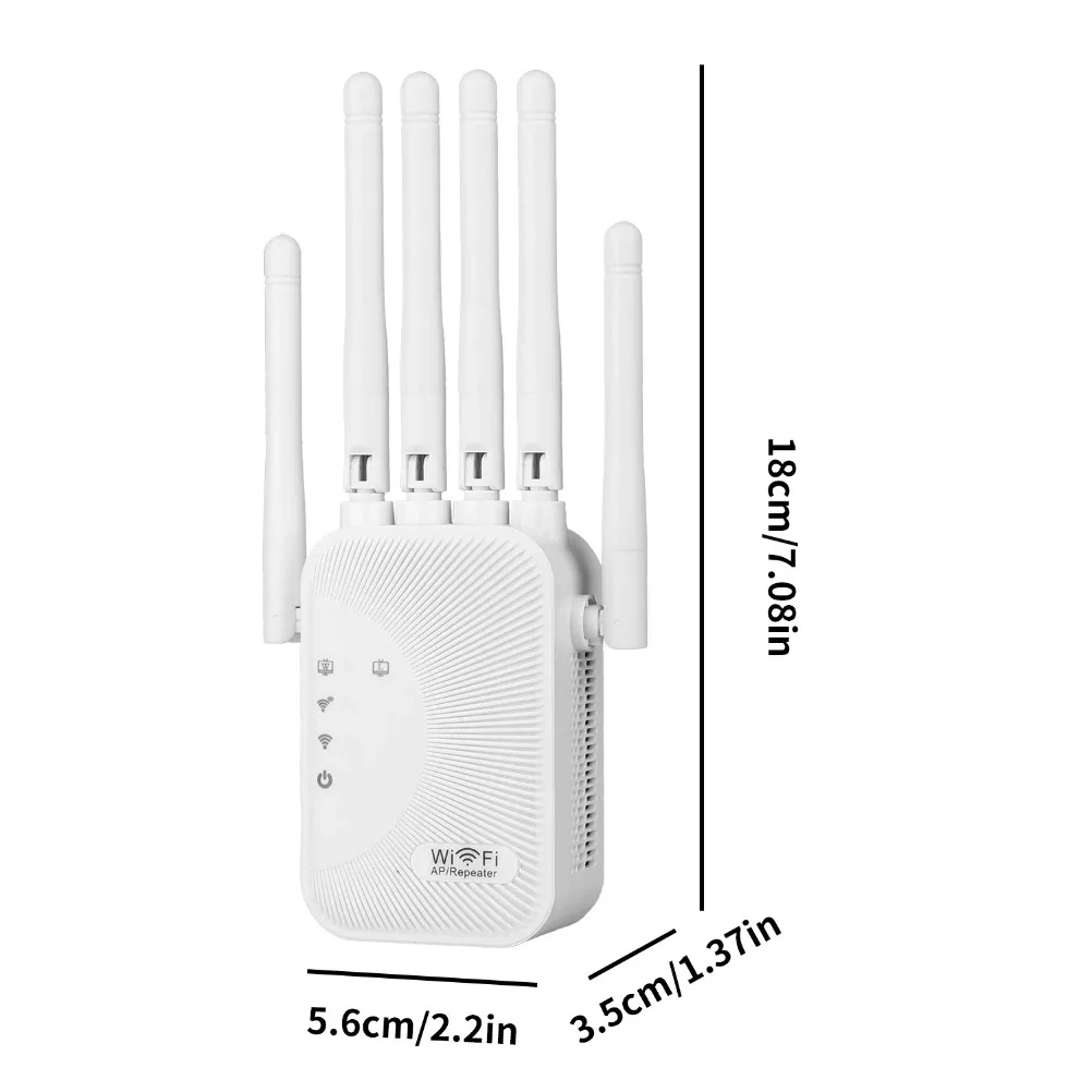 El extensor de alcance WiFi de doble banda AC1200M viene con tecnología 802.11 ac para extender la cobertura y mejorar la intensidad de la señal de una red inalámbrica existente y eliminar zonas muertas.Velocidad de transmisión simultánea de doble banda de 1200 Mbps, hasta 5 GHz 867 Mbps + 2,4 GHz 300 Mbps