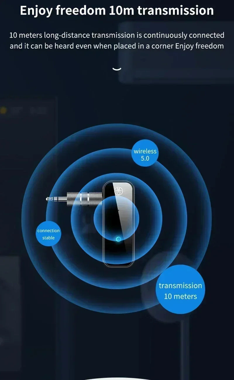 1.COMPATIBLE CON BLUETOOTH: Este adaptador de audio Bluetooth admite audio auxiliar de 3,5 mm y también es compatible con todos los teléfonos inteligentes, dispositivos de audio Bluetooth (auriculares Bluetooth, parlantes Bluetooth y mucho más) y equipos estéreo con puerto de entrada de audio.Al presionar el botón en el frente central, el dispositivo receptor y transmisor comenzará a emparejarse con el siguiente dispositivo Bluetooth.