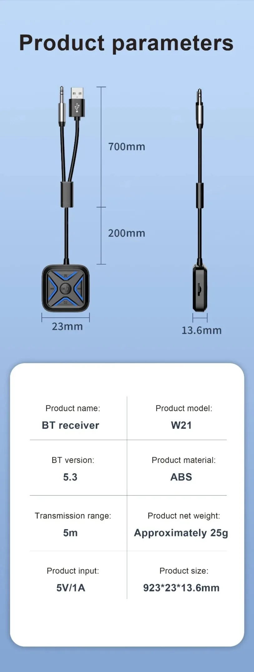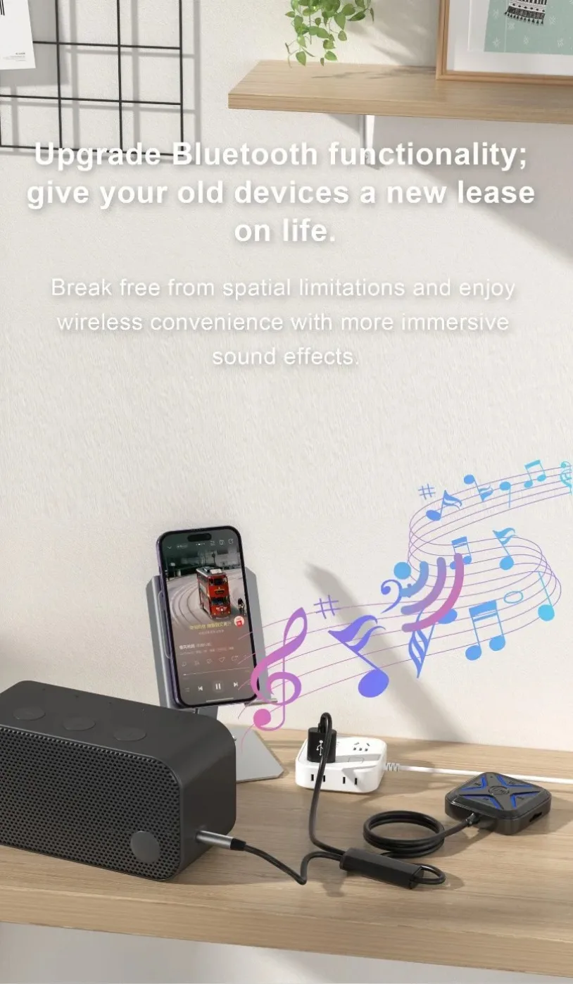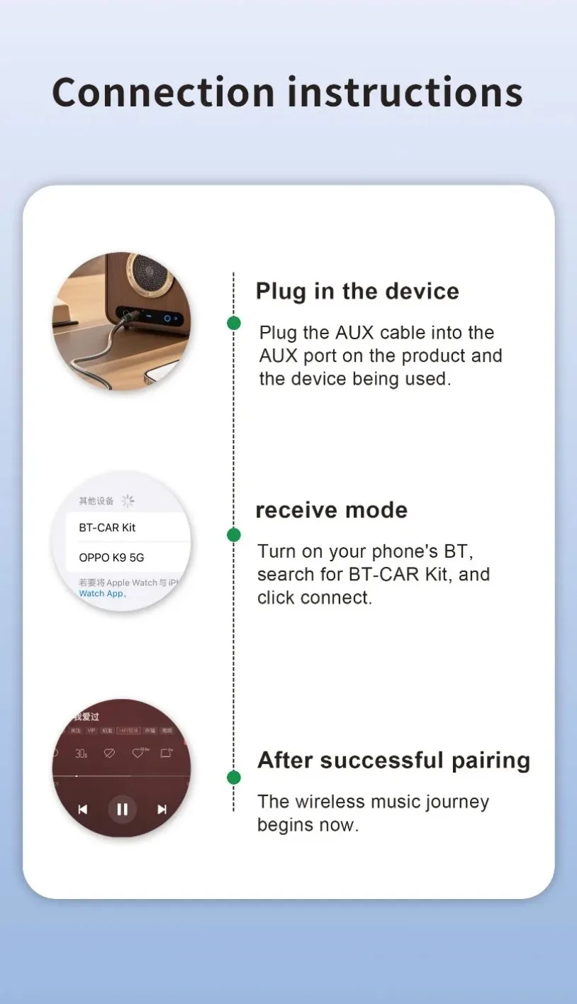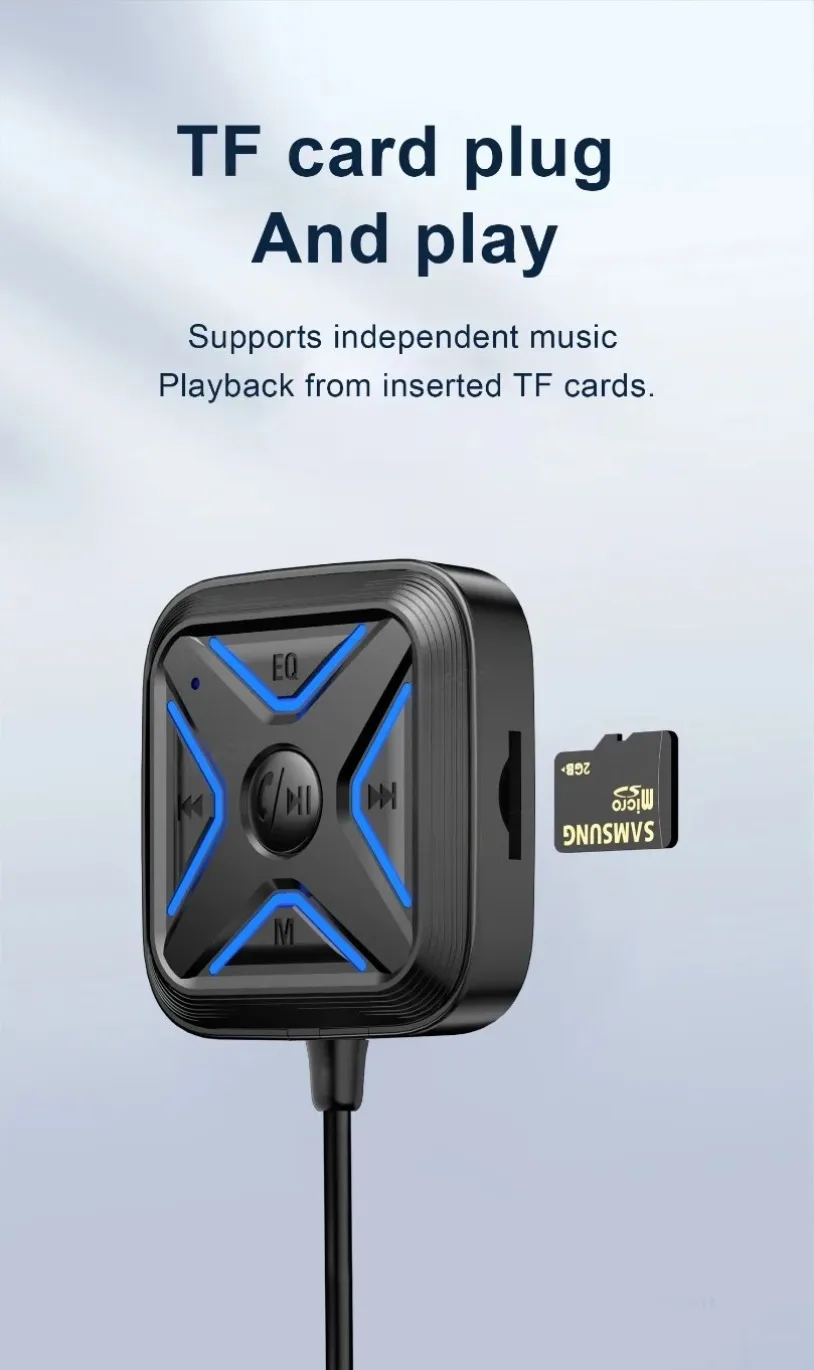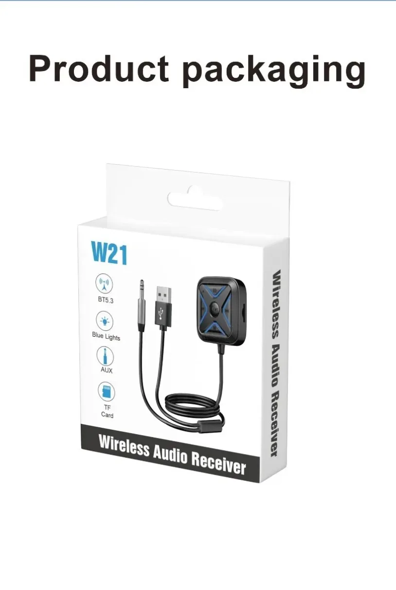 VIKEFON Bluetooth 5,3 AUX adaptador de coche micrófonos duales receptor Bluetooth para llamadas manos libres de coche música automática Audio estéreo