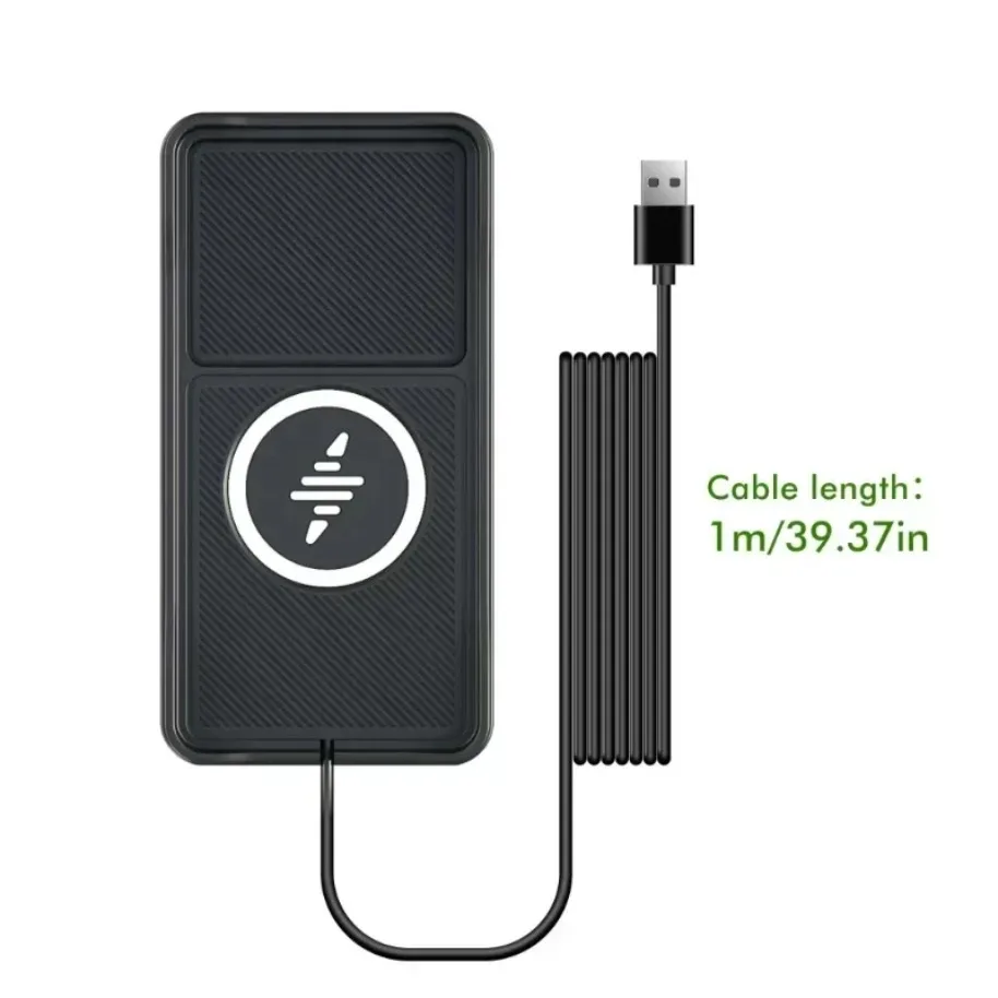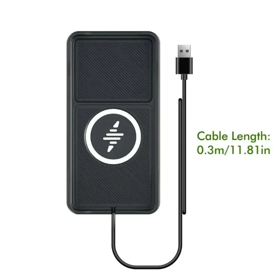 Especificación del producto: Salida: 15W/10W/7,5W/5W Eficiencia de carga: 75% Tamaño: 180 mm/11,09 pulgadas * 92 mm/3,62 pulgadas * 11,5 mm/0,453 pulgadas Longitud del cable: 0,3 m/11,81 pulgadas, 1 m/39,37 pulgadas Peso: 180 g