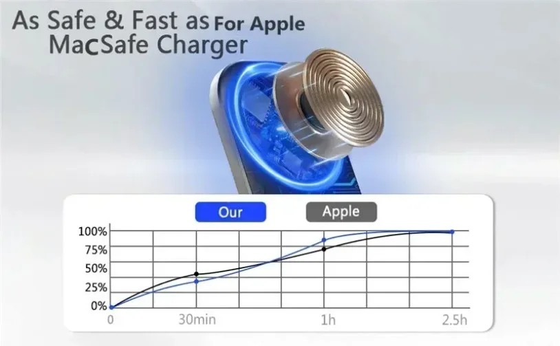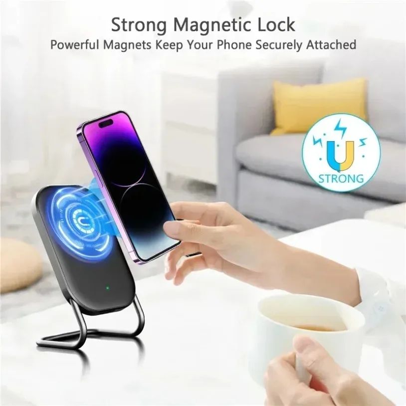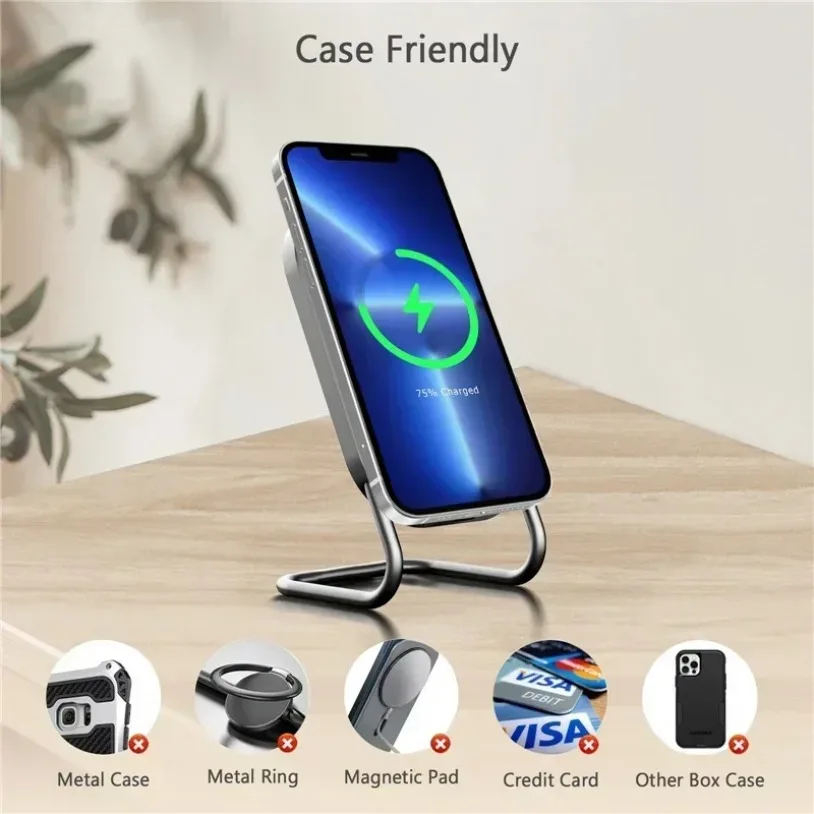 【Carga versátil, seguridad con facilidad】El diseño magnético le permite usarlo horizontalmente para ver películas o verticalmente para chatear.Las características de protección inteligente de nuestro cargador protegen contra riesgos de sobrecarga, sobrecorriente, sobretensión y sobretemperatura.También puede detectar objetos extraños, garantizando una carga segura y eficiente de sus dispositivos.