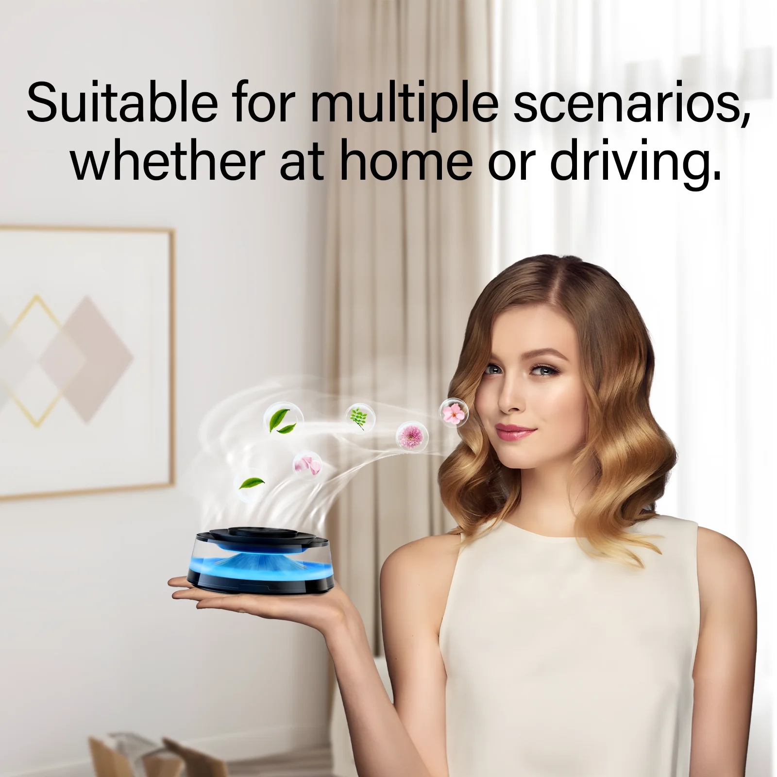 Click the power on button, and the green light flashes twice, prompting to start the home mode, work regularly for 1 hour, and spray once every 3 minutes; Double click the power button, the purple light flashes twice, prompting to turn on the 2-hour home style.