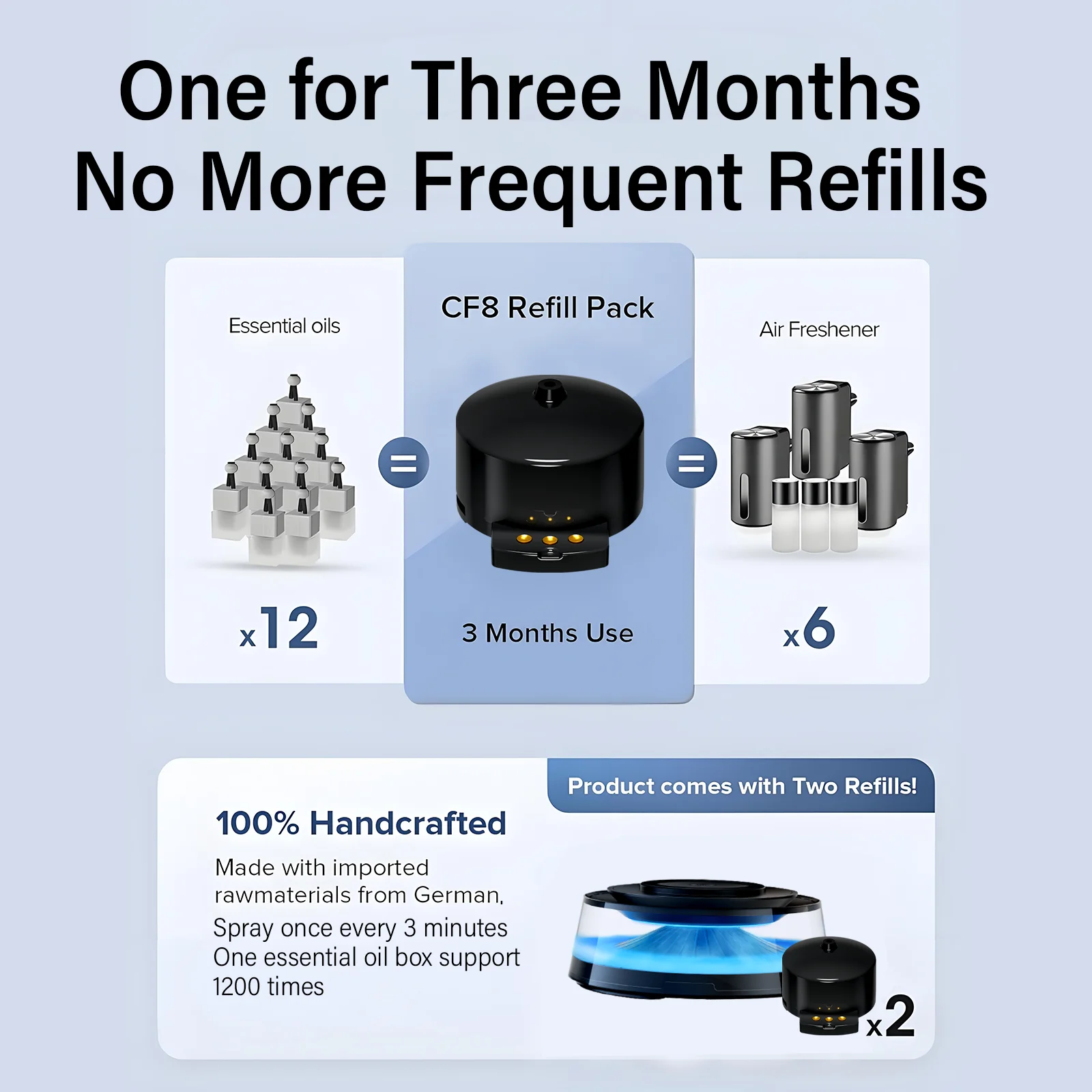 4. If the essential oil compartment is not installed or no essential oil is detected in the compartment, the red and yellow lights will flash alternately three times. Simply replace the essential oil compartment. The essential oil storage tank stops working after 1200 uses.
