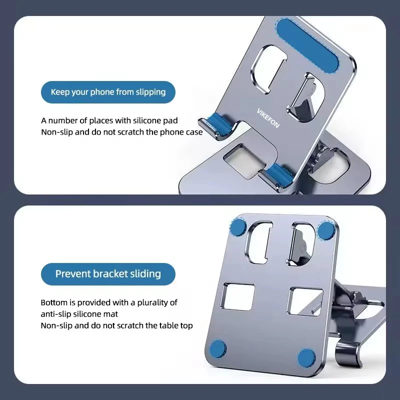 1. Totalmente plegable: este soporte para teléfono plegable adopta un diseño plegable, que ahorra espacio y es liviano.Fácil de llevar en los bolsillos o bolsos y llevarlo a cualquier parte.