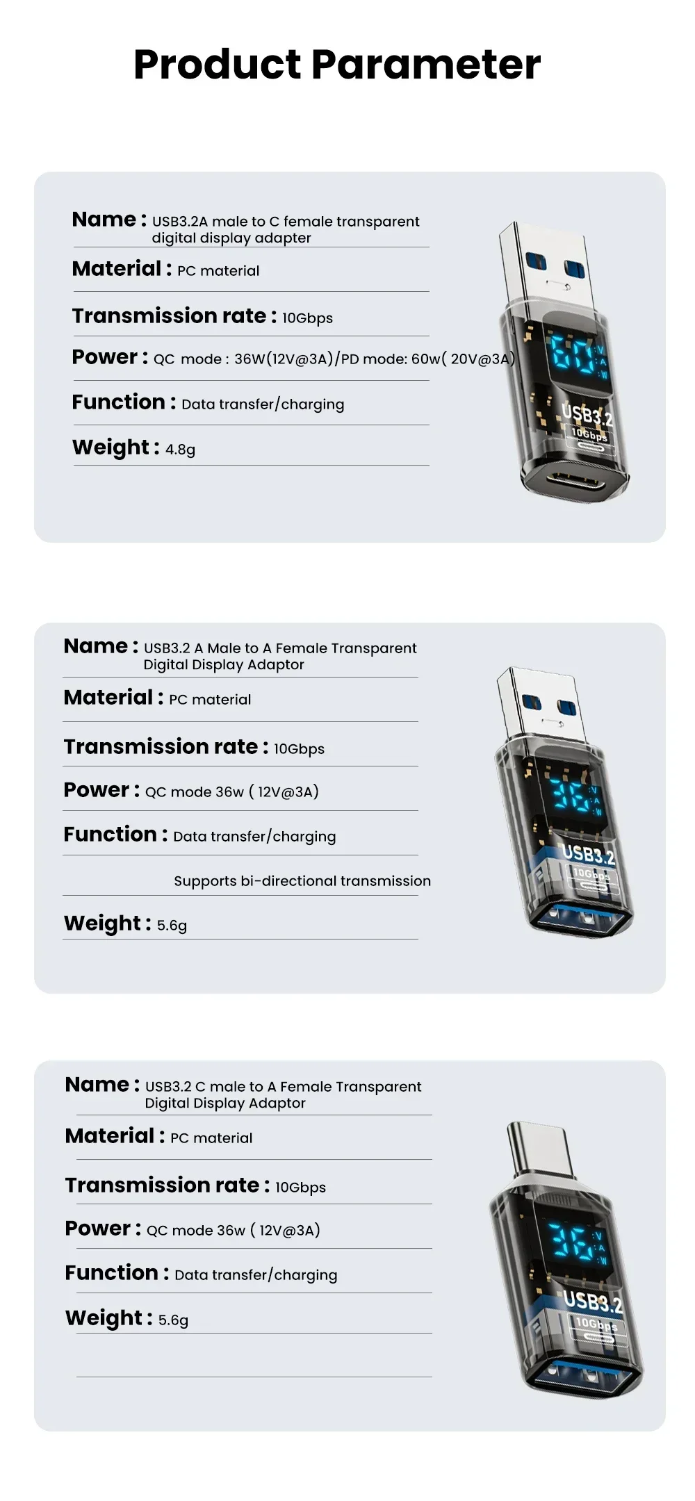 *Nota: La carga de 60W requiere un dispositivo compatible con PD.(solo los modelos A macho a C hembra admiten 60W (modo PD))