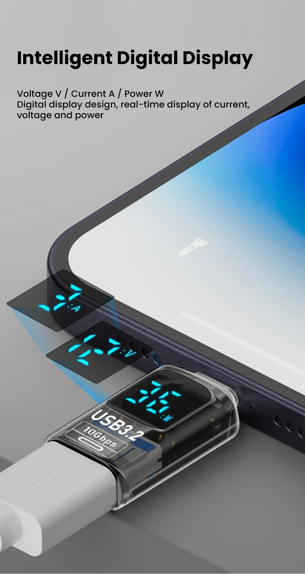 Cargando: Carga rápida PD de 36W-60W + Medidor de potencia en tiempo real*