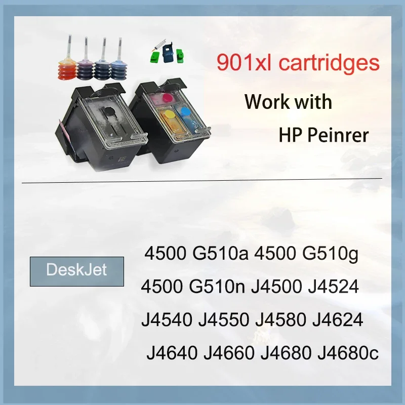 Confirme que el modelo de su impresora esté en la descripción del listado (Ctrl+F) y su modelo de cartucho de tinta original o anterior es "901" o "901 XL"; Si no es 901 o 901xl, nuestro producto no será adecuado para su impresora