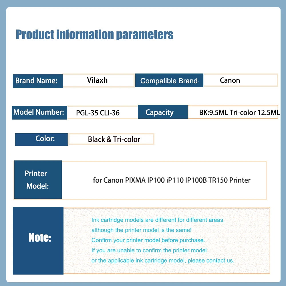 Vilaxh-Cartuchos de tinta de repuesto para impresora Canon Pixma IP100B IP100 IP100 con batería Mini 260 320, PGI35, PGI35, 2, 1, 2, 1, 2, 2, 1, 2, 2, 2, 1, 2, 1, 2, 2