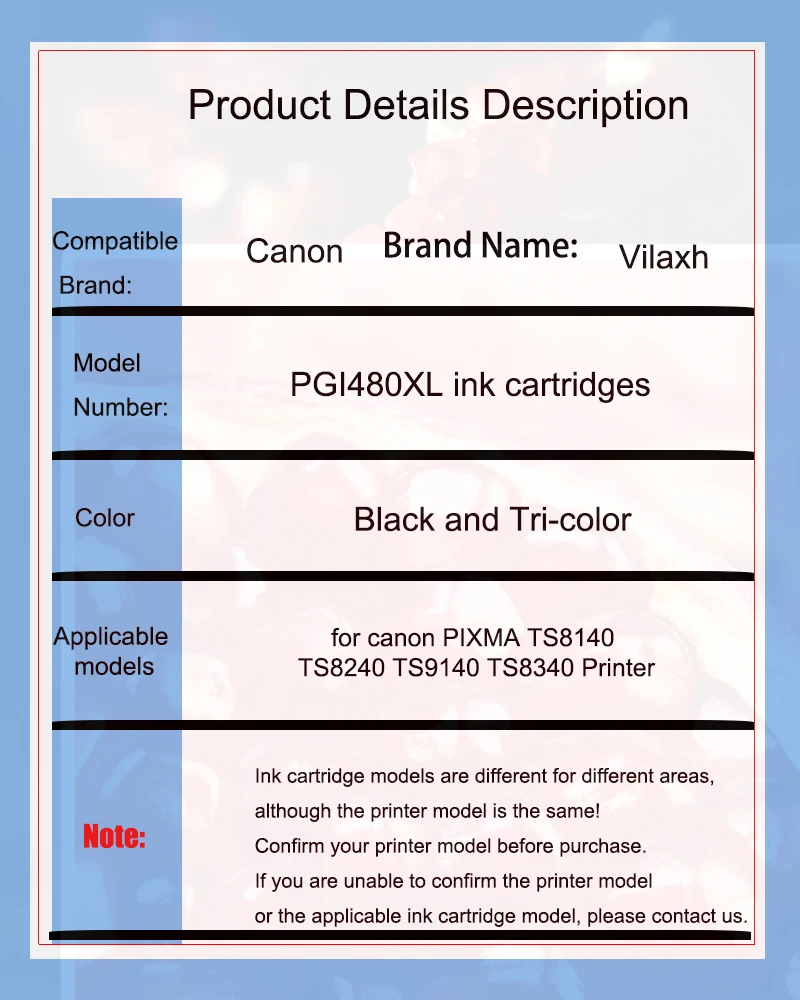 Comprar Vilaxh-cartucho de tinta para impresora de inyección de tinta PGI480, PGI-480 compatible con CLI-481, Canon TS6140, TS8140, TS9140, PGI 480, CLI480