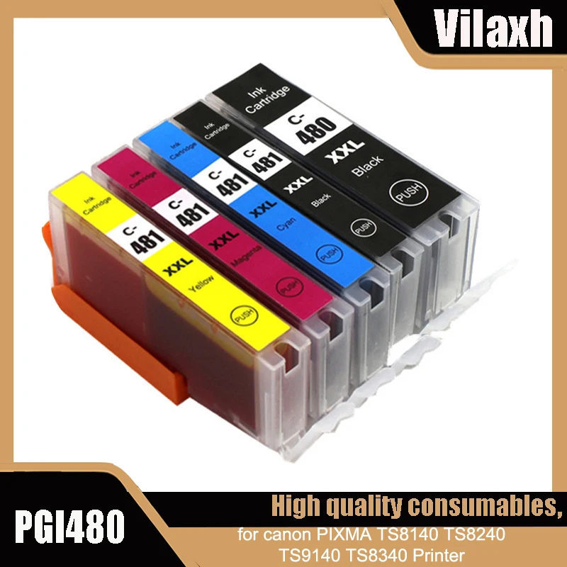 Comprar Vilaxh-cartucho de tinta para impresora de inyección de tinta PGI480, PGI-480 compatible con CLI-481, Canon TS6140, TS8140, TS9140, PGI 480, CLI480