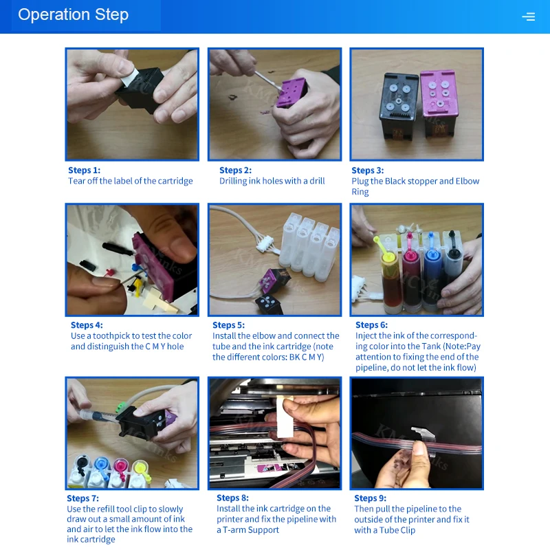 1 tanque Ciss de 4 colores de 80 ML con tubo de 90 mm