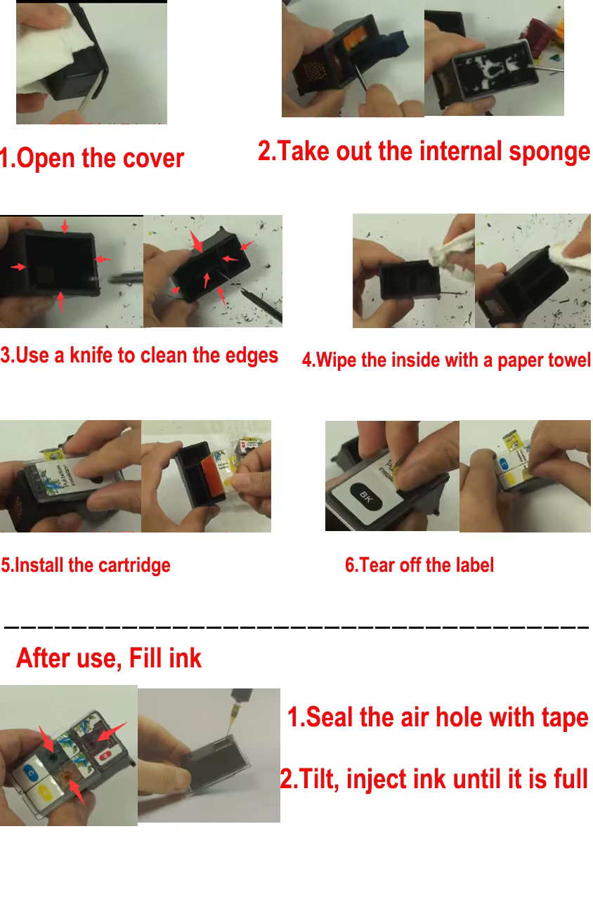 Nota 1:El revestimiento interior no es un cartucho de tinta y no se puede utilizar directamente. Es necesario modificar el cartucho de tinta del accesorio antes de usarlo. Utilice forros de diferentes colores para la modificación. Confirme que su cartucho de tinta original anterior funciona correctamente (sin enchufe, desconectado y reconocible) y que puede imprimir normalmente. Los accesorios deben modificarse en el cartucho de tinta original y reemplazarse después de su uso. Gran capacidad del producto (en comparación con los cartuchos de tinta originales)