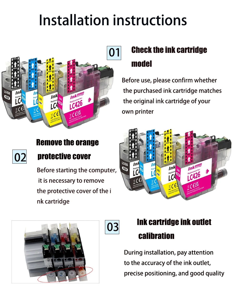 Antes de comprar, confirme si el modelo es un cartucho de tinta LC426.De lo contrario, no compre para evitar incompatibilidad.Si no está seguro, puede ponerse en contacto con el personal para obtener ayuda.