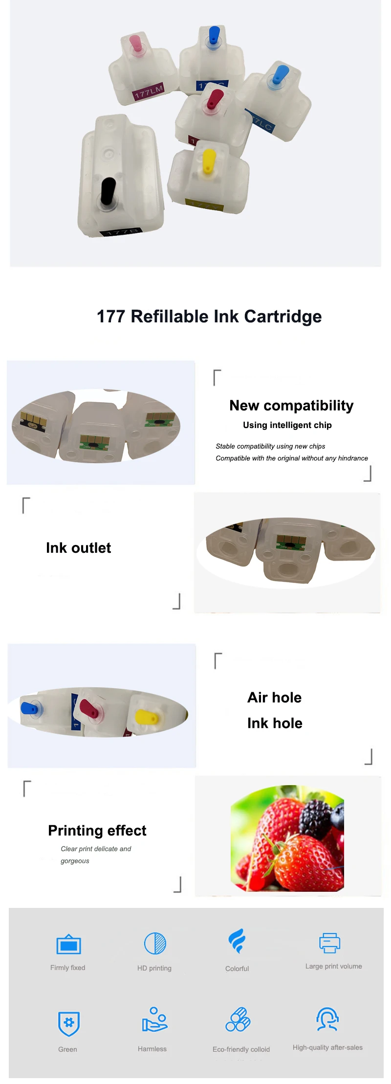 Cartucho de tinta recargable Vilaxh 177, repuesto para impresora Photosmart C5100 C5140 C5183 C6270 C6280 C6180 177 3110 3210