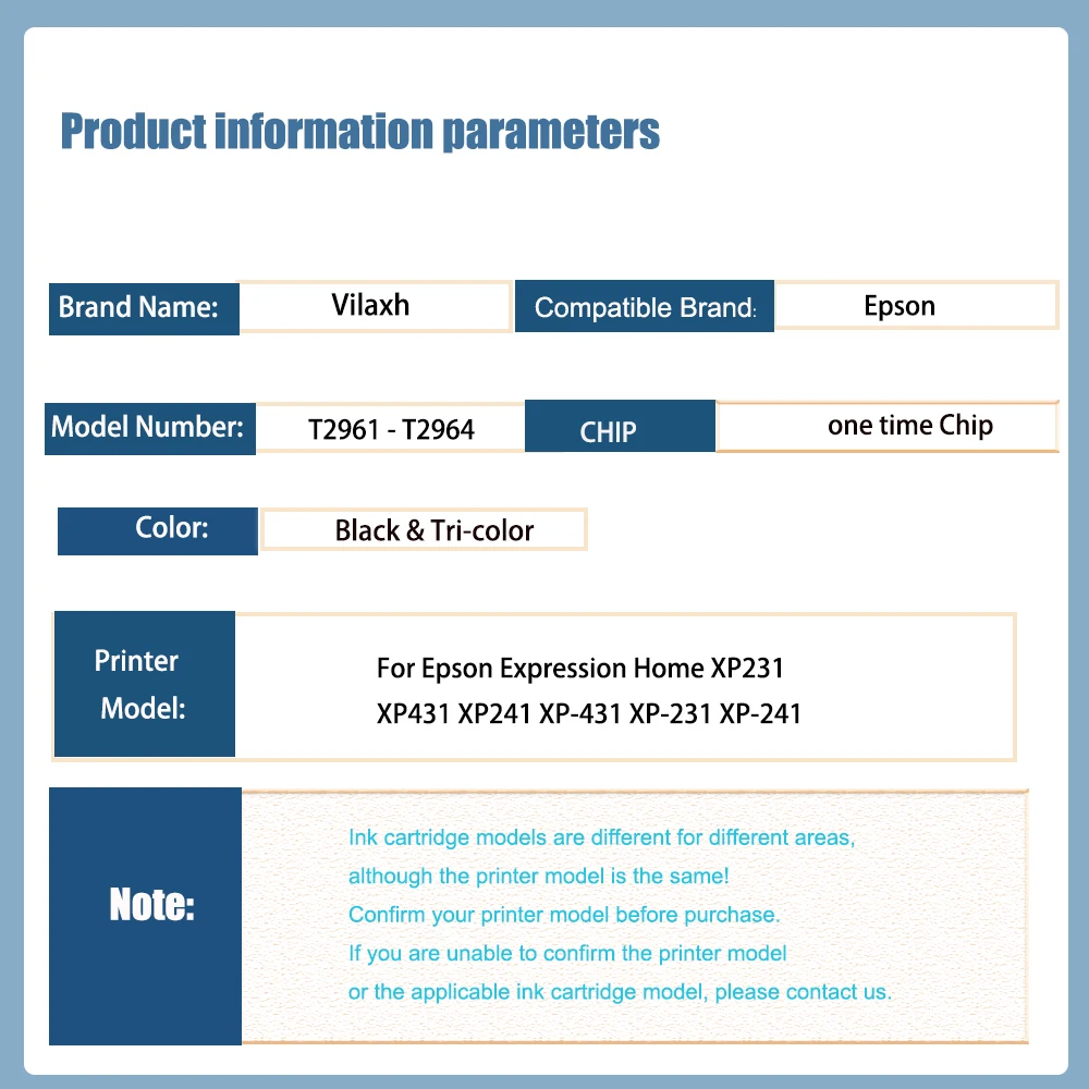 vilaxh T2971 T2962 - T2964 Ink Cartridge One Time Chip For Epson Expression Home XP231 XP431 XP241 XP-431 XP-231 XP-241