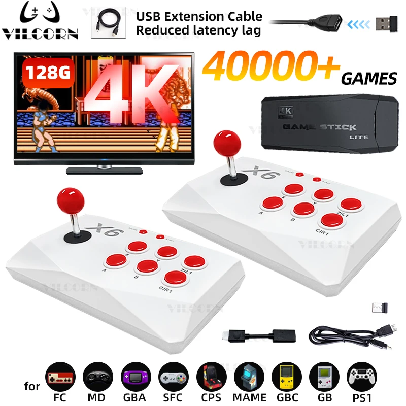 Comprar VILCORN M8 Game Stick 4K consola de videojuegos Arcade para MAME PS1 9 emulador con doble Arcade Joysitck 41000 juegos máquina Retro