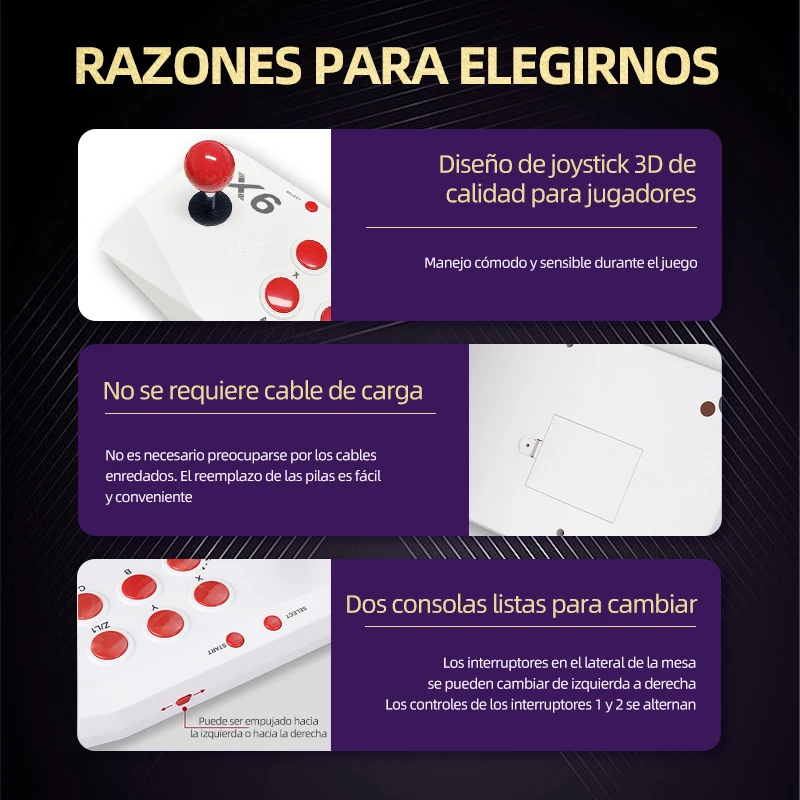 El joystick del juego adopta un diseño 3D, la manipulación es más flexible, la experiencia del juego es mejor, el control es más sensible, no es necesario cargarlo, ahorra tiempo de carga, se puede instalar directamente la batería, es más conveniente y más rápido
