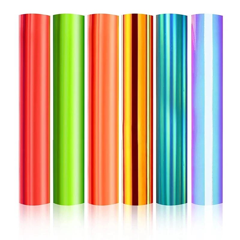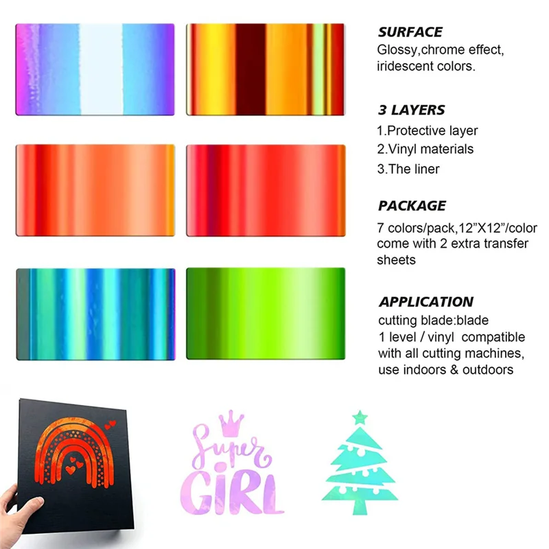 Comprar Vinilo holográfico para manualidades, adhesivo de oro cromado, permanente, 12 pulgadas x 12 pulgadas para camafeo, cromo, rojo, 6 hojas