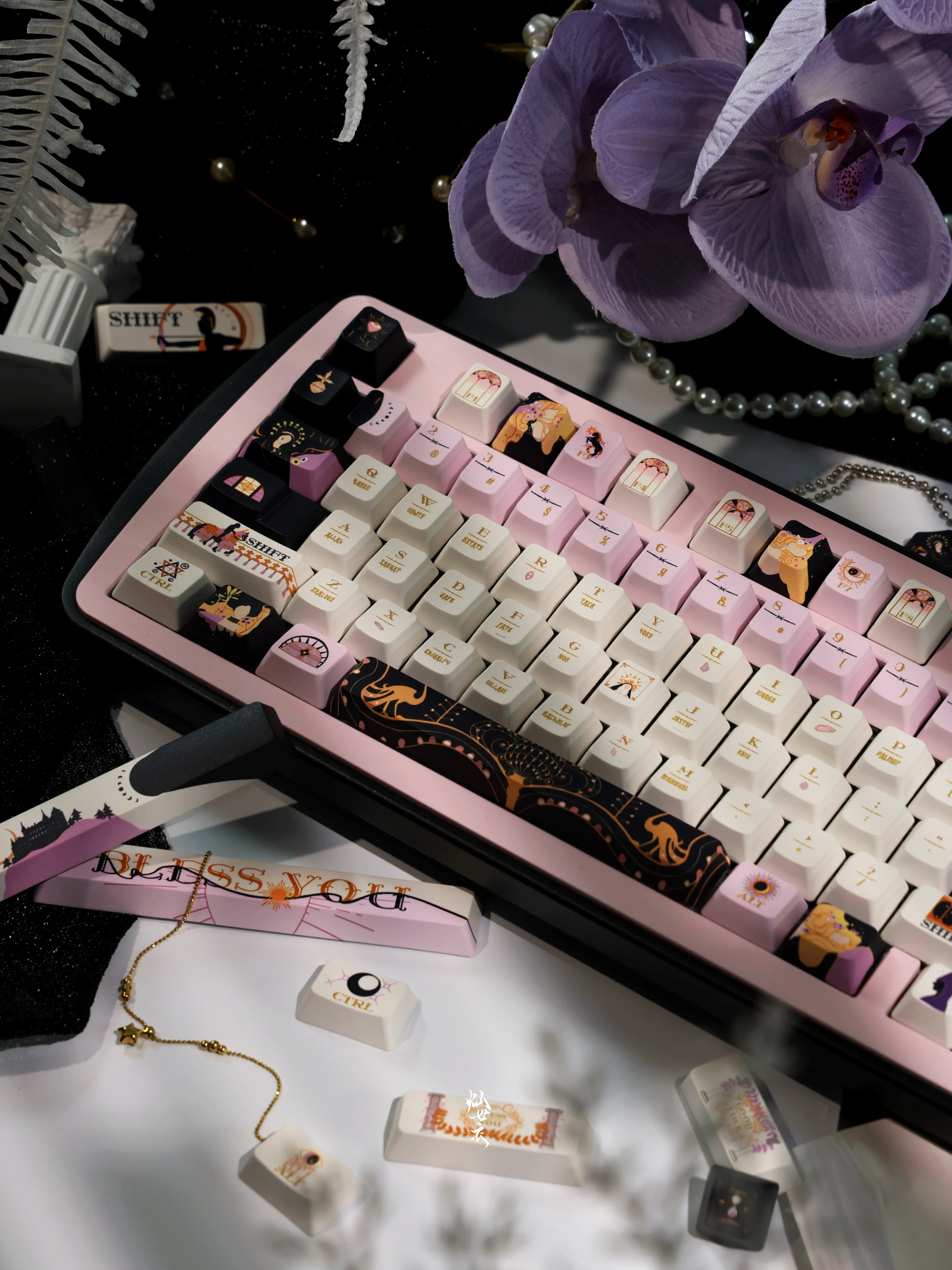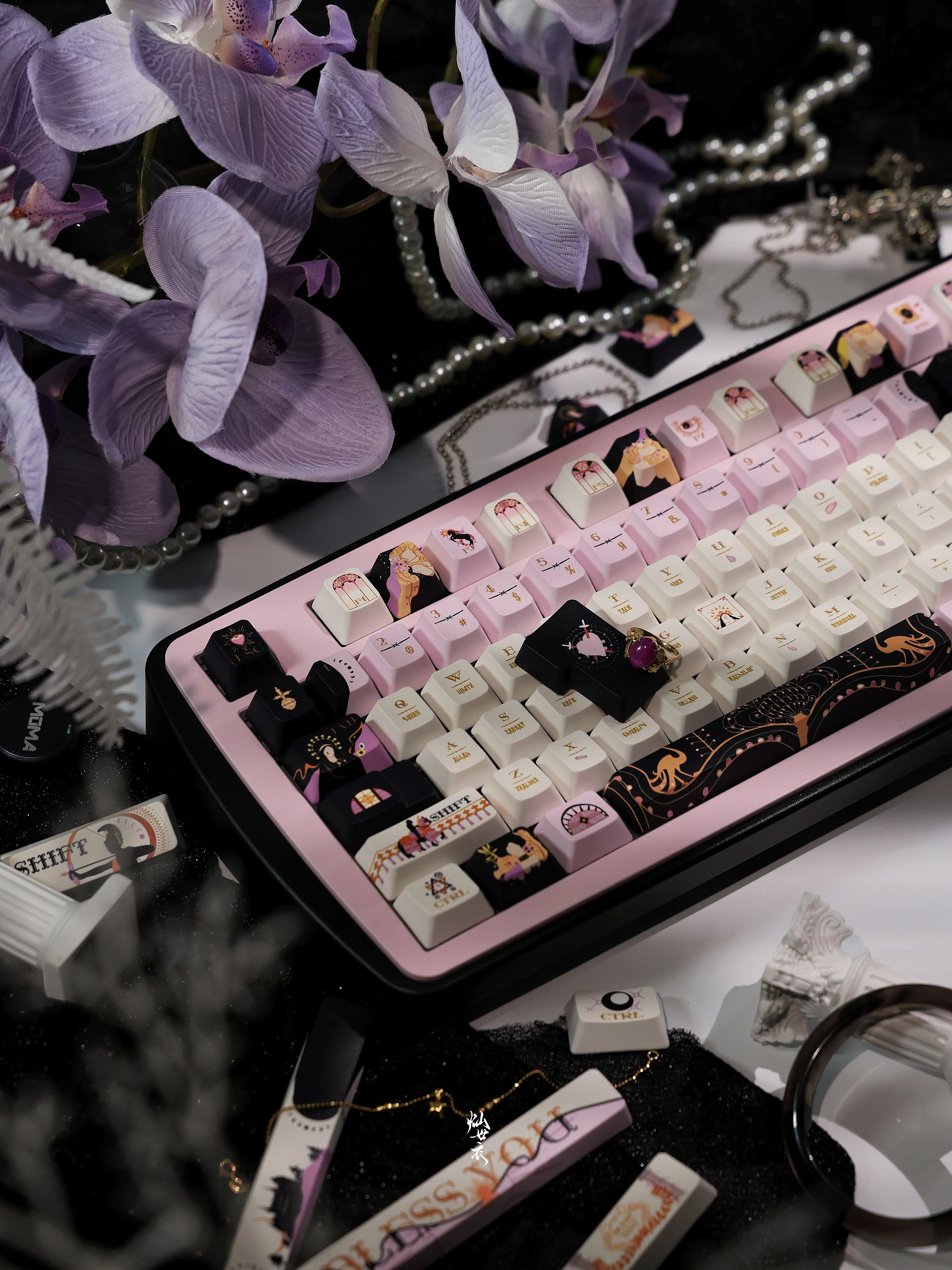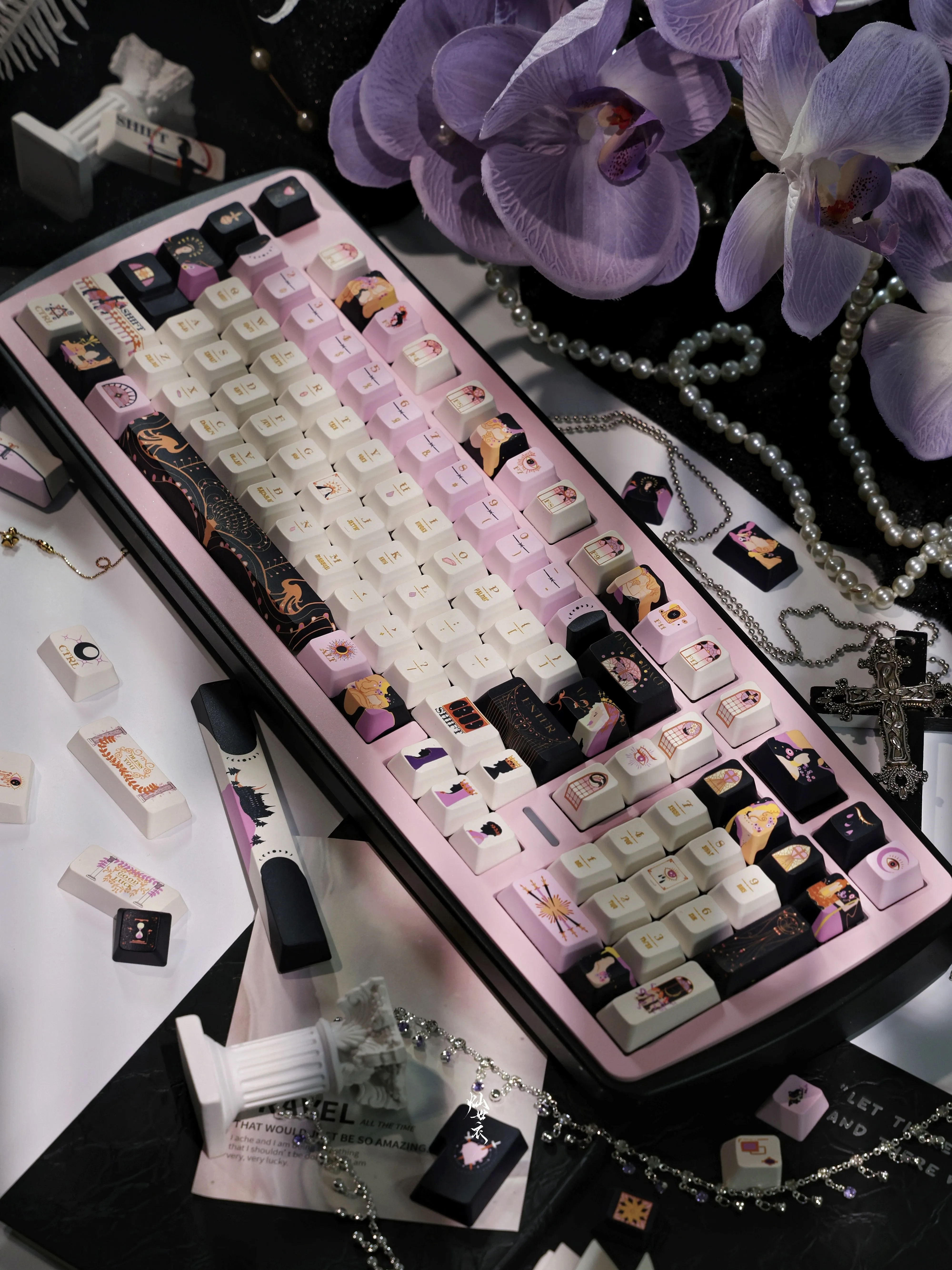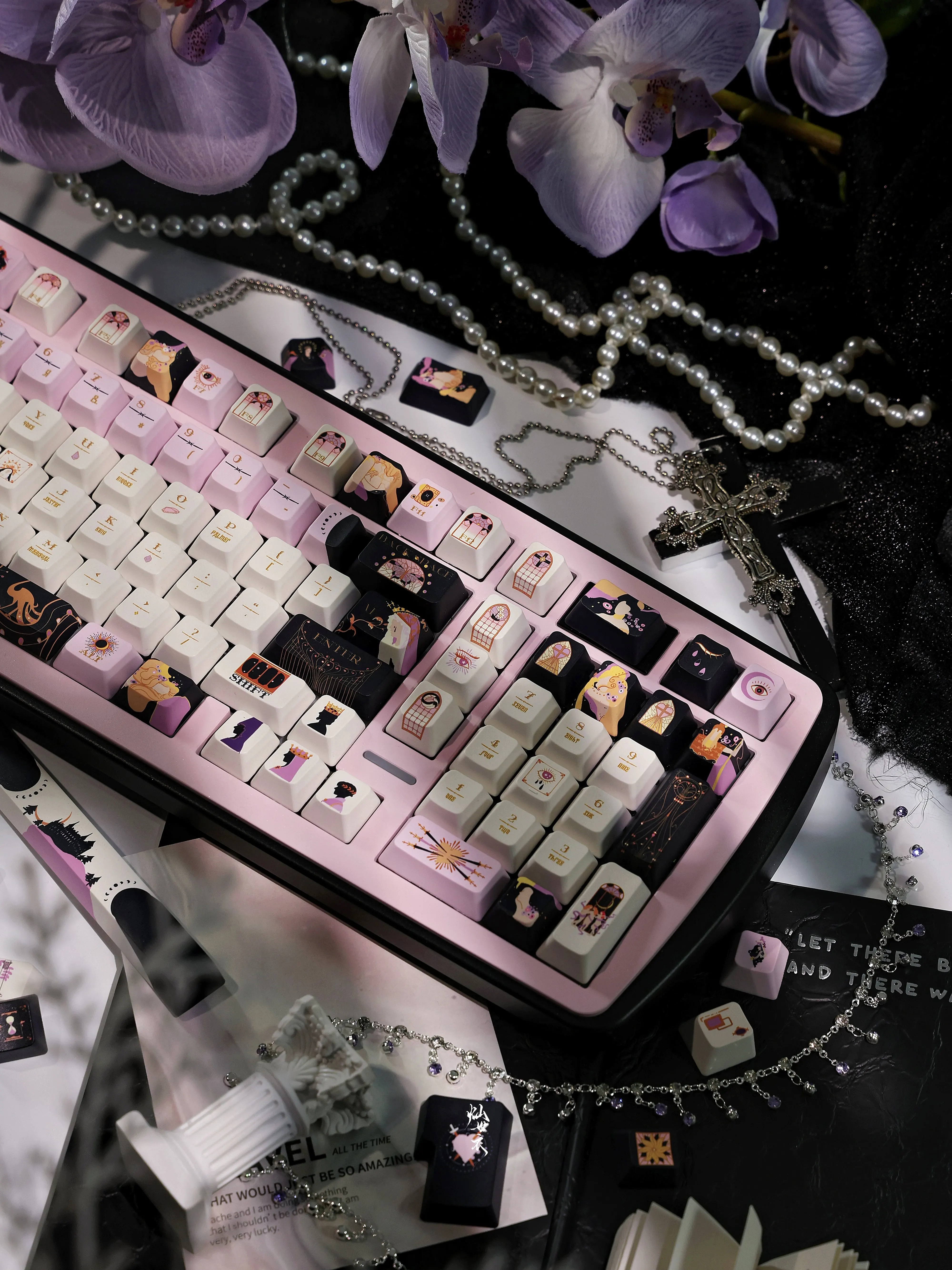 Comprar Virgen María lágrimas Keycap rosa negro estilo romántico Keycap forma de L Enter Key Cherry Pbt Keycap Set