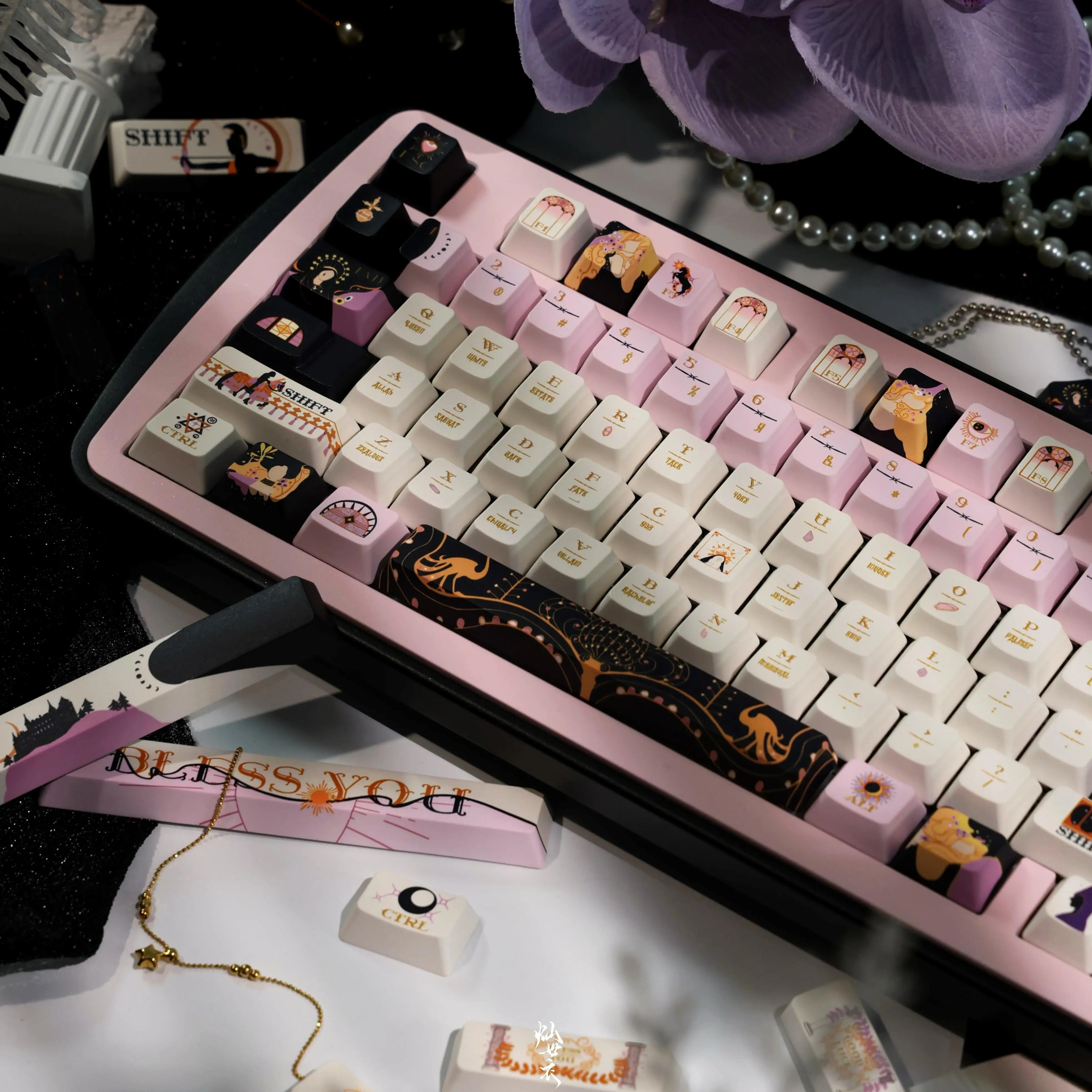 Comprar Virgen María lágrimas Keycap rosa negro estilo romántico Keycap forma de L Enter Key Cherry Pbt Keycap Set