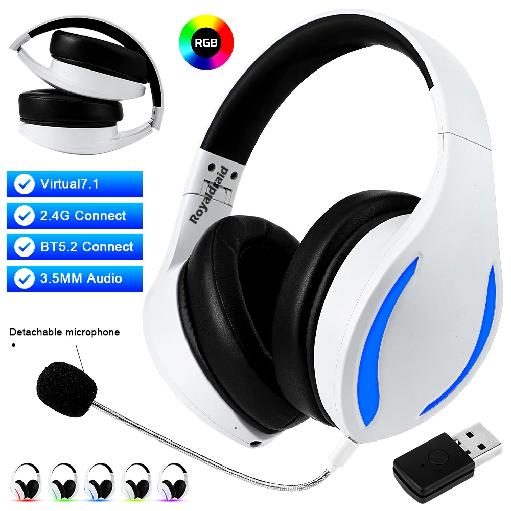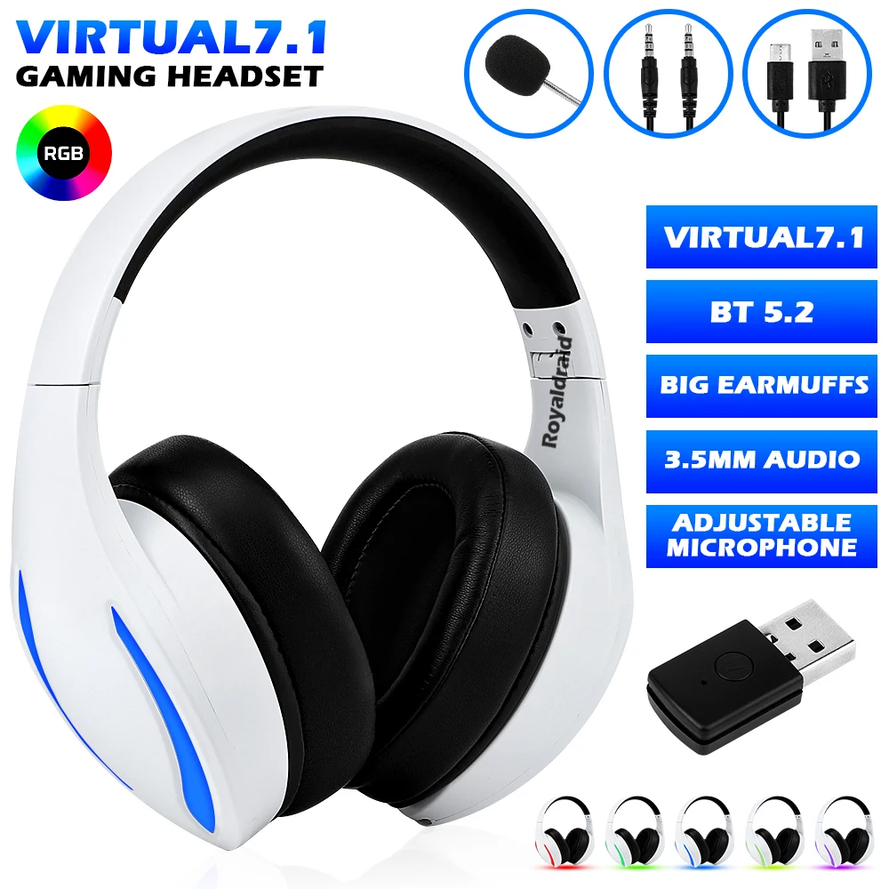 Virtural 7.1 auriculares inalámbricos para juegos auriculares para jugadores con micrófono Universal para PS4 PS5 NS Swith para PC ordenador portátilCaracterísticas:❤️ Experiencia envolvente virtual superior 7.1: eleva el audio de tu juego a nuevos niveles de inmersión.