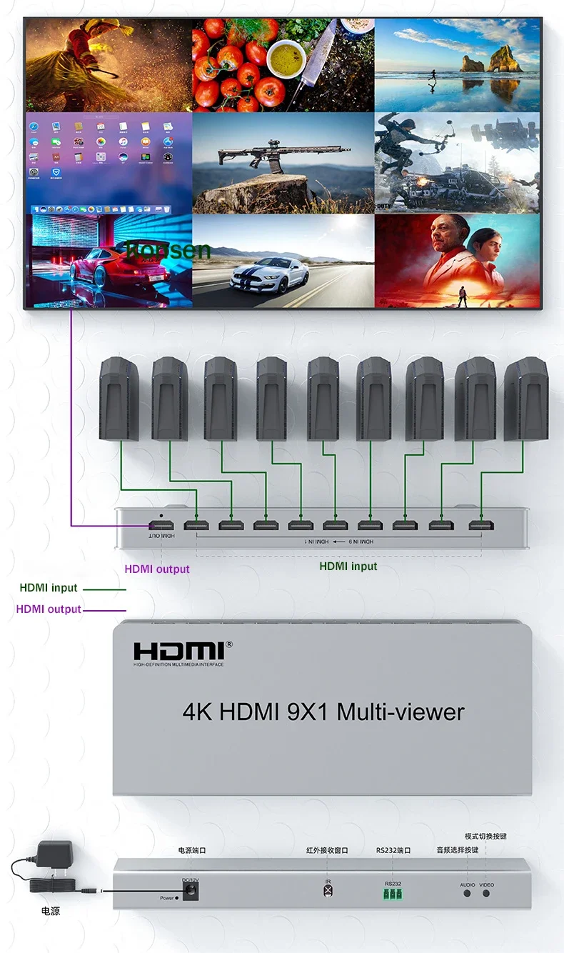 Nueva llegada mejorada 4K HDMI 9x1 multivisorIntroducción: