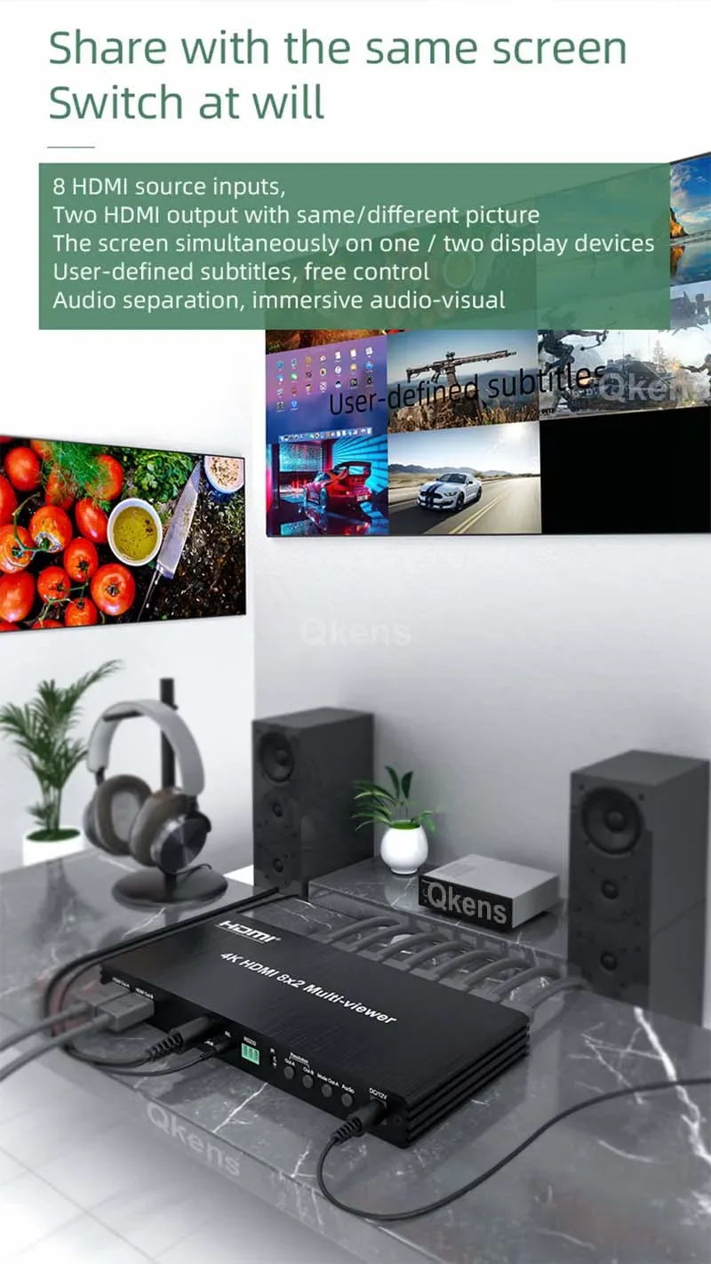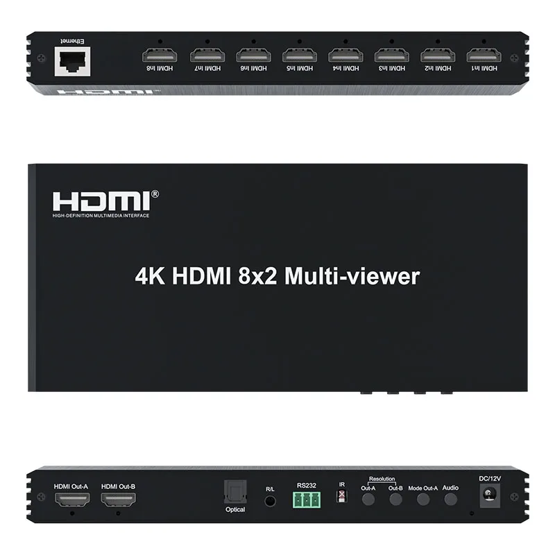 Comprar Visor múltiple de pantalla cuádruple, interruptor sin costuras, 4K, 60hz, HDMI, 8x2, 8 en 2, 2x1, 3x1, 4x1, 5x1, 6x1, 8x1 multiplexor de vídeo