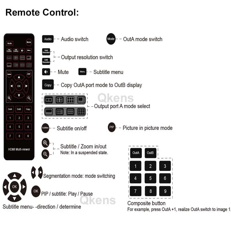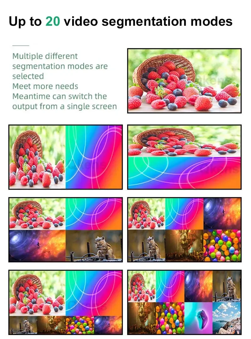 Sin caja de venta al por menor y otros accesorios, si lo necesita, contáctenos antes de comprar.Observación:La salida B solo admite una pantalla 1/2/3 -- 8 o copia la salida actual A,No admite pantallas multivisor de forma independiente.