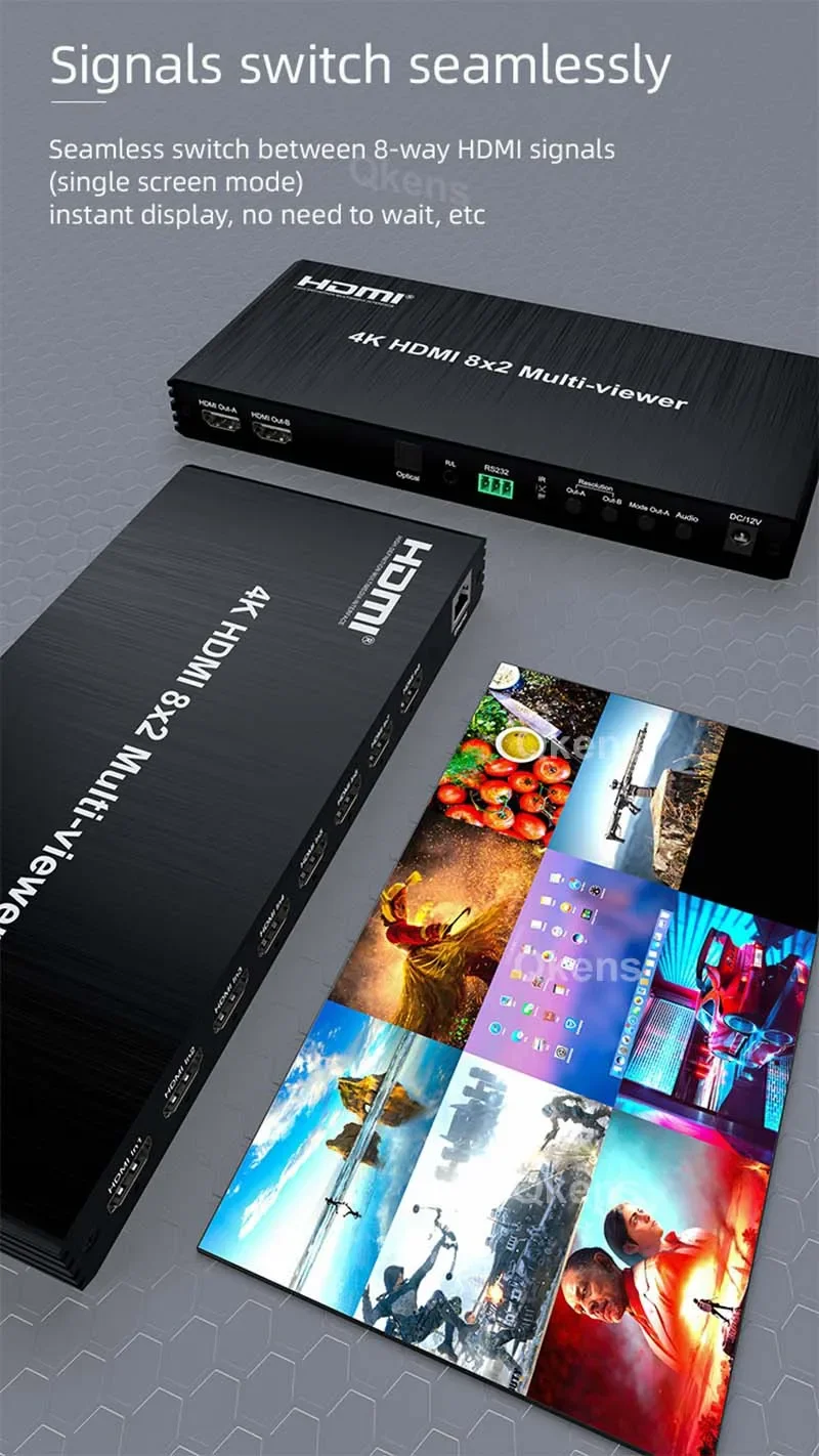 Comprar Visor múltiple de pantalla cuádruple, interruptor sin costuras, 4K, 60hz, HDMI, 8x2, 8 en 2, 2x1, 3x1, 4x1, 5x1, 6x1, 8x1 multiplexor de vídeo