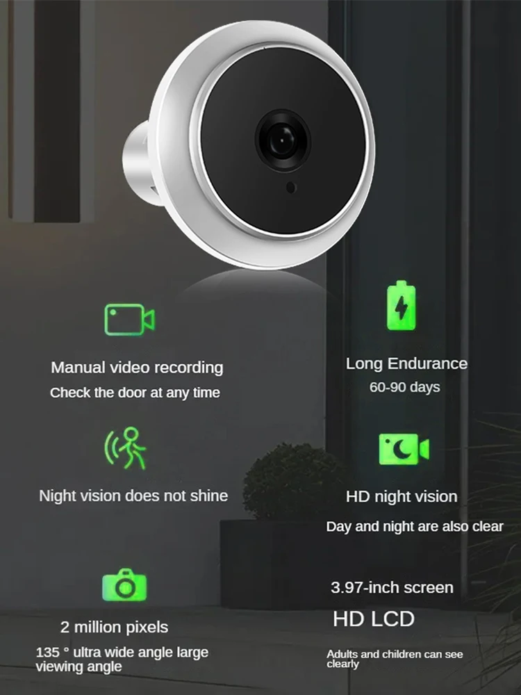 1.Pantalla de alta definición:Nuestro Visor de puerta digital con vídeoViene con una pantalla de alta definición, que proporciona imágenes claras y nítidas que le garantizan una mayor seguridad.