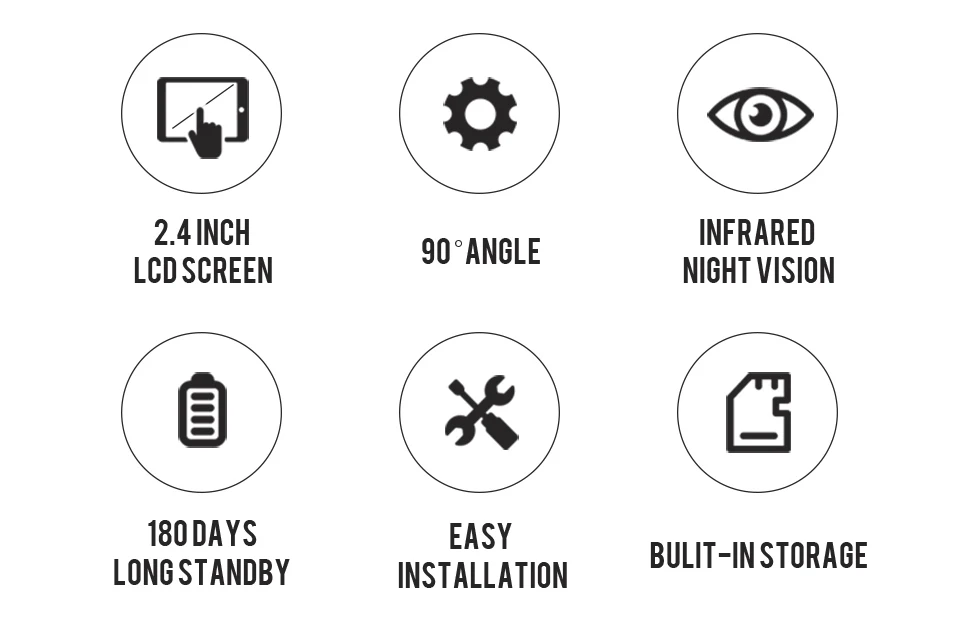 Puedes ver la escena exterior claramente mediante una pantalla LCD de alta definición de 2,4 pulgadas, 90° La visión de gran angular le permite ver más.