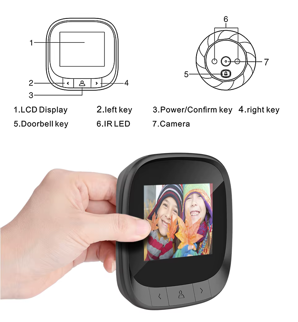 Visor de puerta electrónico inteligente de 2,4 pulgadas, mirilla de puerta nocturna infrarroja, cámara con pantalla LCD, Control de acceso, cámara, número de grabación de fotos