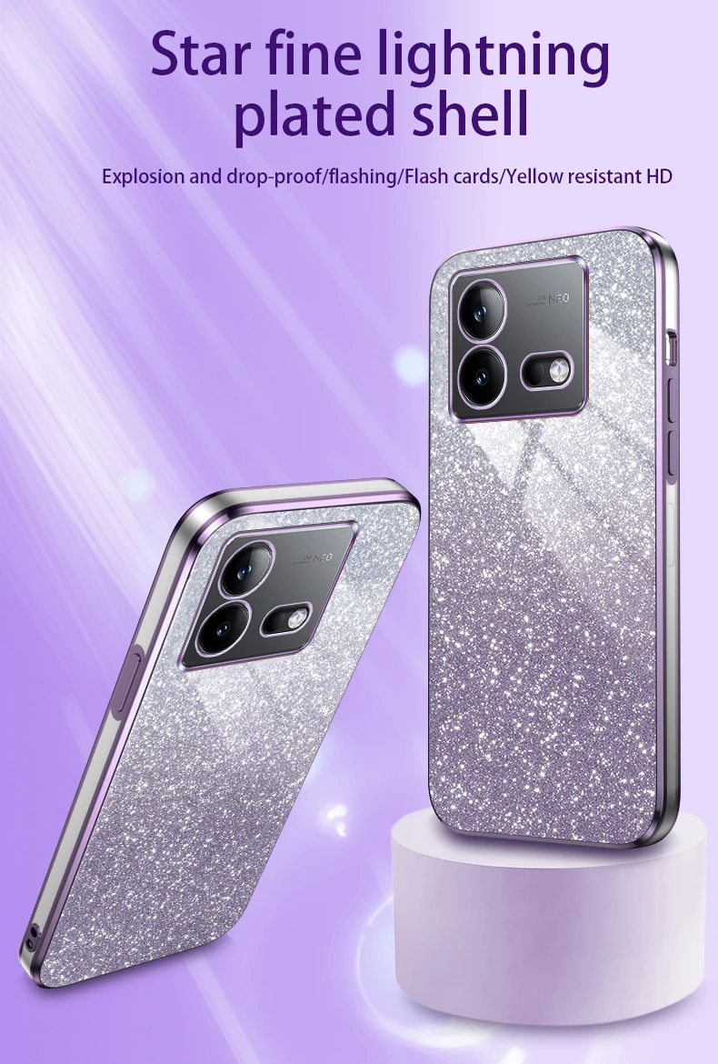 Comprar Para Vivo IQOO Neo8 funda Vivo IQOO Neo 8 Pro Funda de teléfono neo 8Pro cubierta de lujo gradiente brillo chapado Funda trasera de silicona Funda