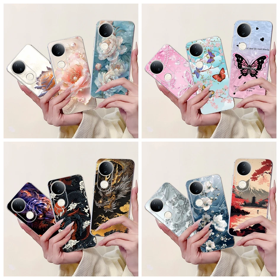 Para Vivo S20 funda V2429A funda de lujo dragón flor TPU suave transparente fundas de teléfono de silicona para Vivo S20 Pro funda V2430A S 20 Coque