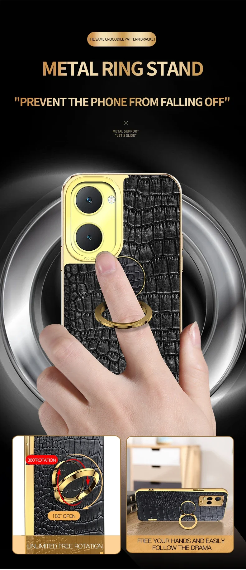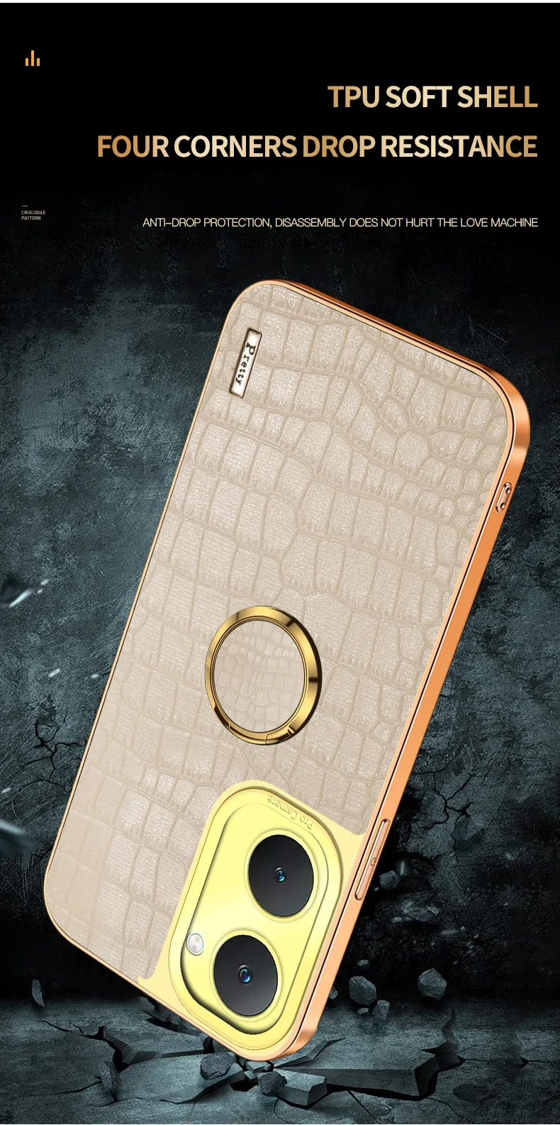 Para vivo T4x T3 Lite X80 T3 Ultra T2 Pro 5G patrón de cocodrilo funda suave de cuero PU soporte de anillo a prueba de golpes fundas de teléfono