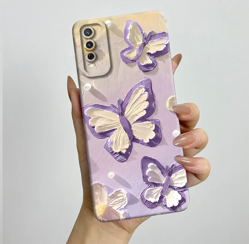 Para Vivo V2027 V2028 Y20 Y20i Funda bonita mariposa flores silicona suave TPU Funda para Vivo Y11s Y12s Y 20 i Funda de teléfono