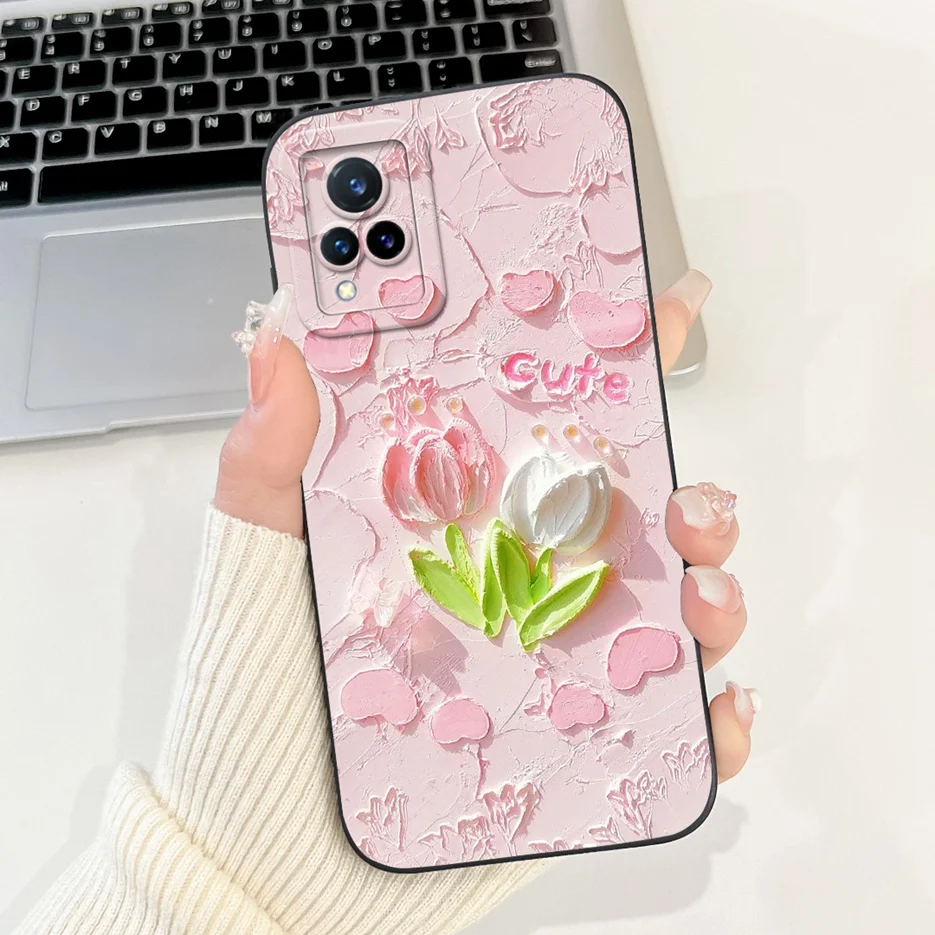 Para Vivo V21 4G funda V2066 V2108 bonita funda de dibujos animados a prueba de golpes suave TPU funda de teléfono para Vivo V21e V 21 e VivoV21 4G Shell