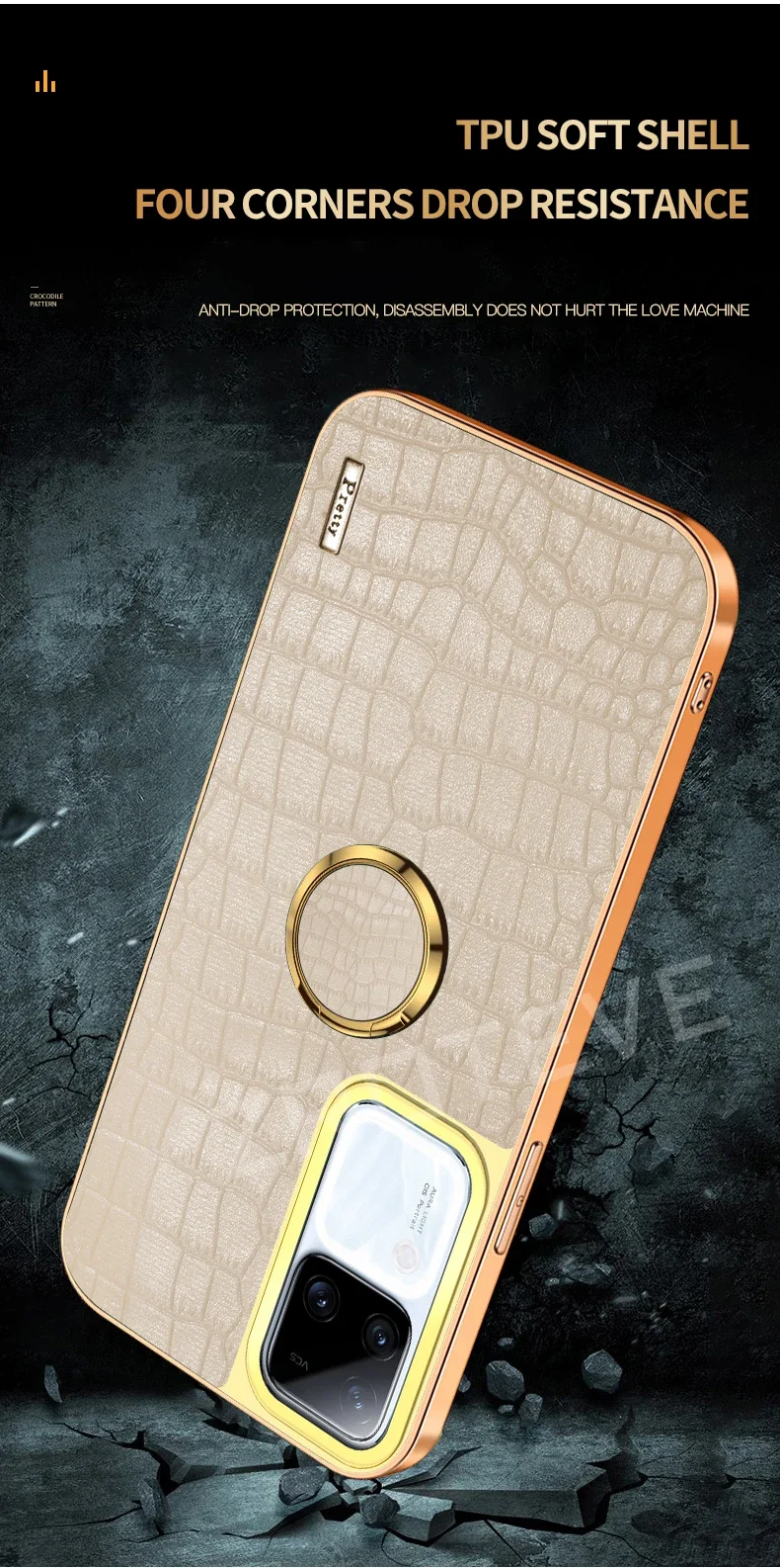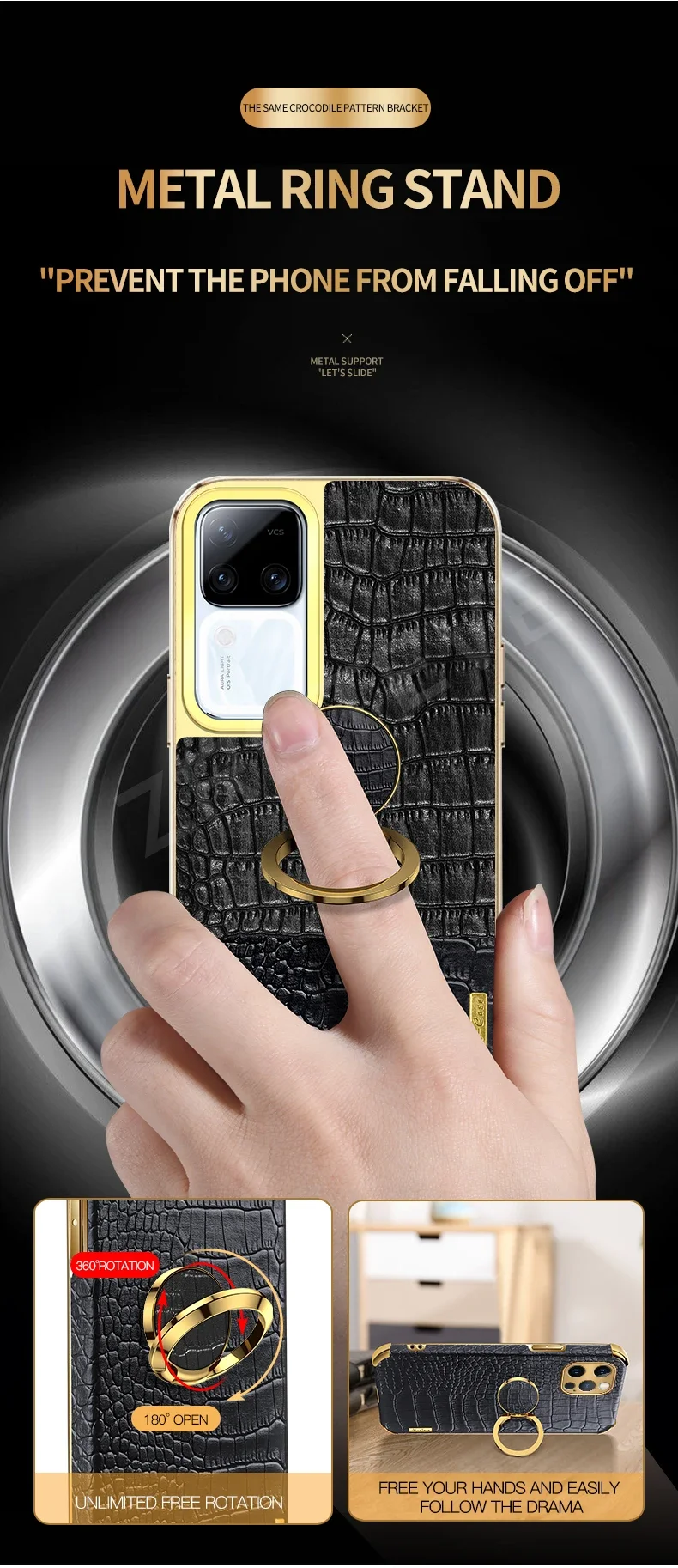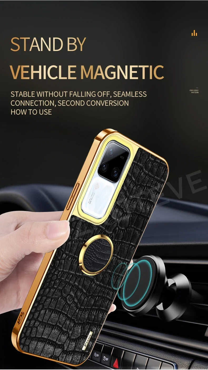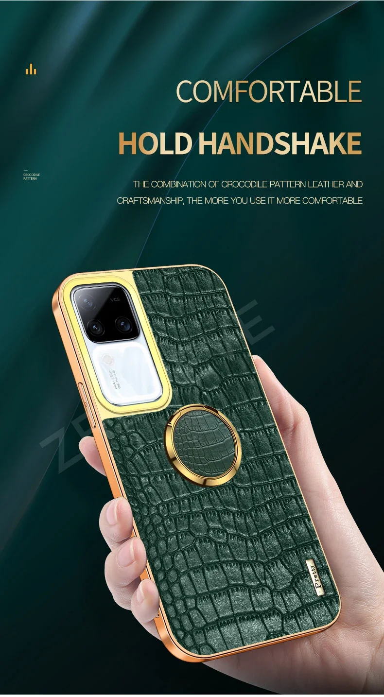 Para Vivo V30 Pro funda Zroteve soporte de anillo de cuero de cocodrilo funda suave para Vivo V30 V30Pro VivoV30 Pro fundas de teléfono a prueba de golpes