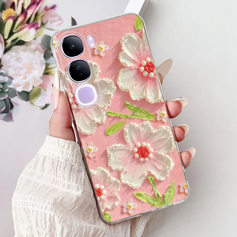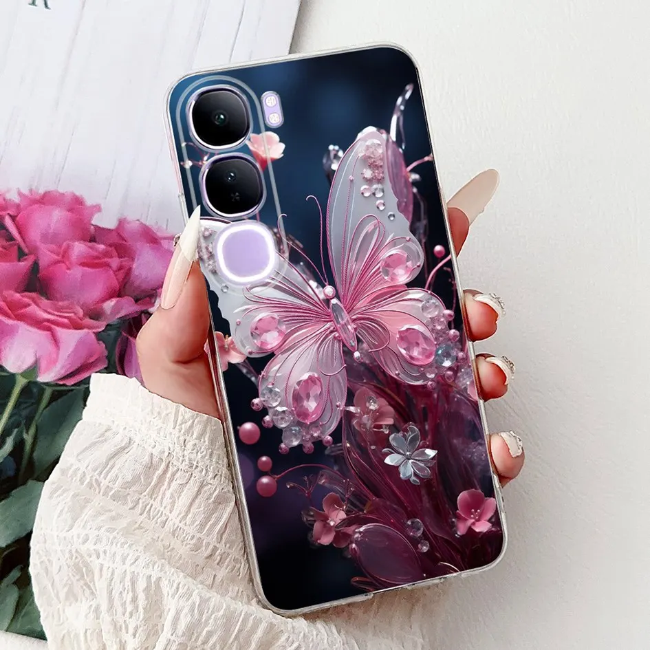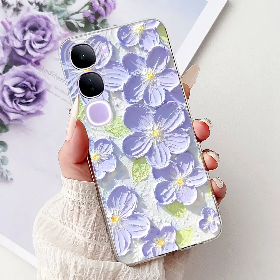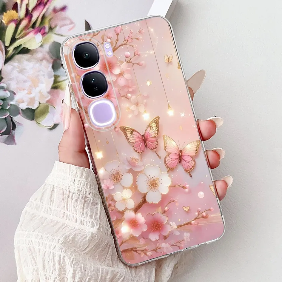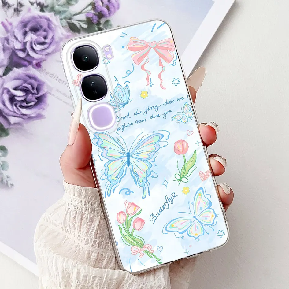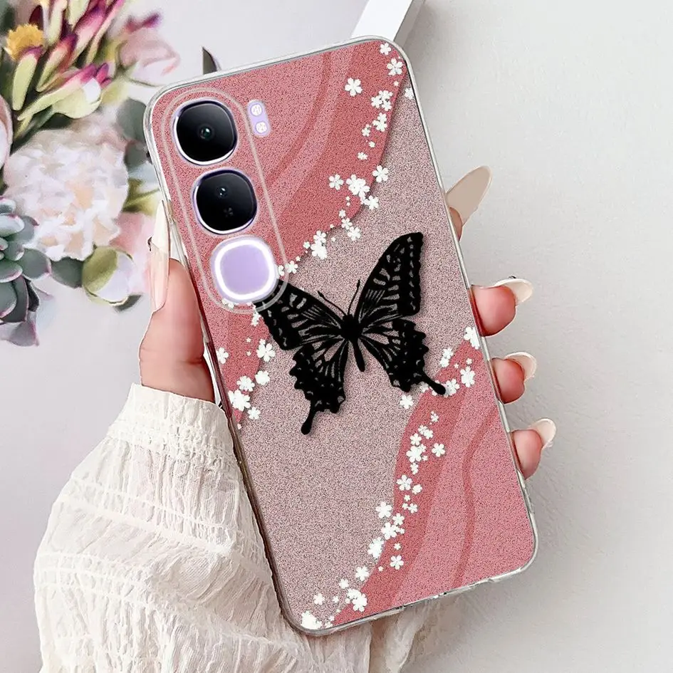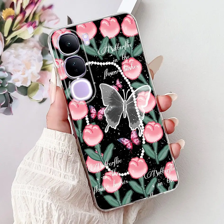 Comprar Para Vivo V40 Lite (IDN) V2417 funda de silicona 6,67 "funda de teléfono transparente de TPU con flores a la moda para Vivo V40 Lite 4G Y200 5G V40Lite Etui