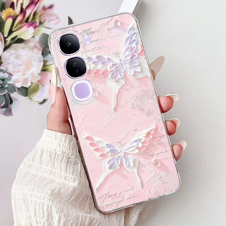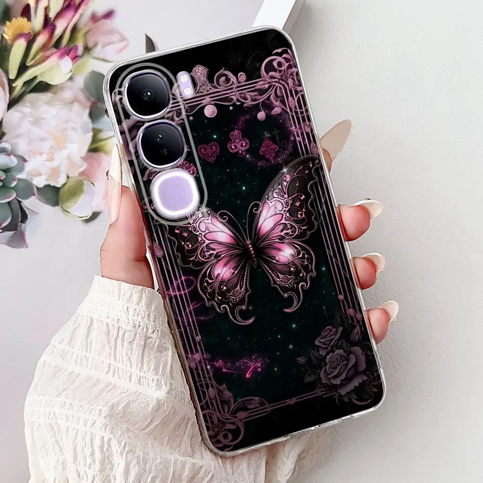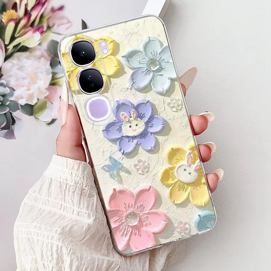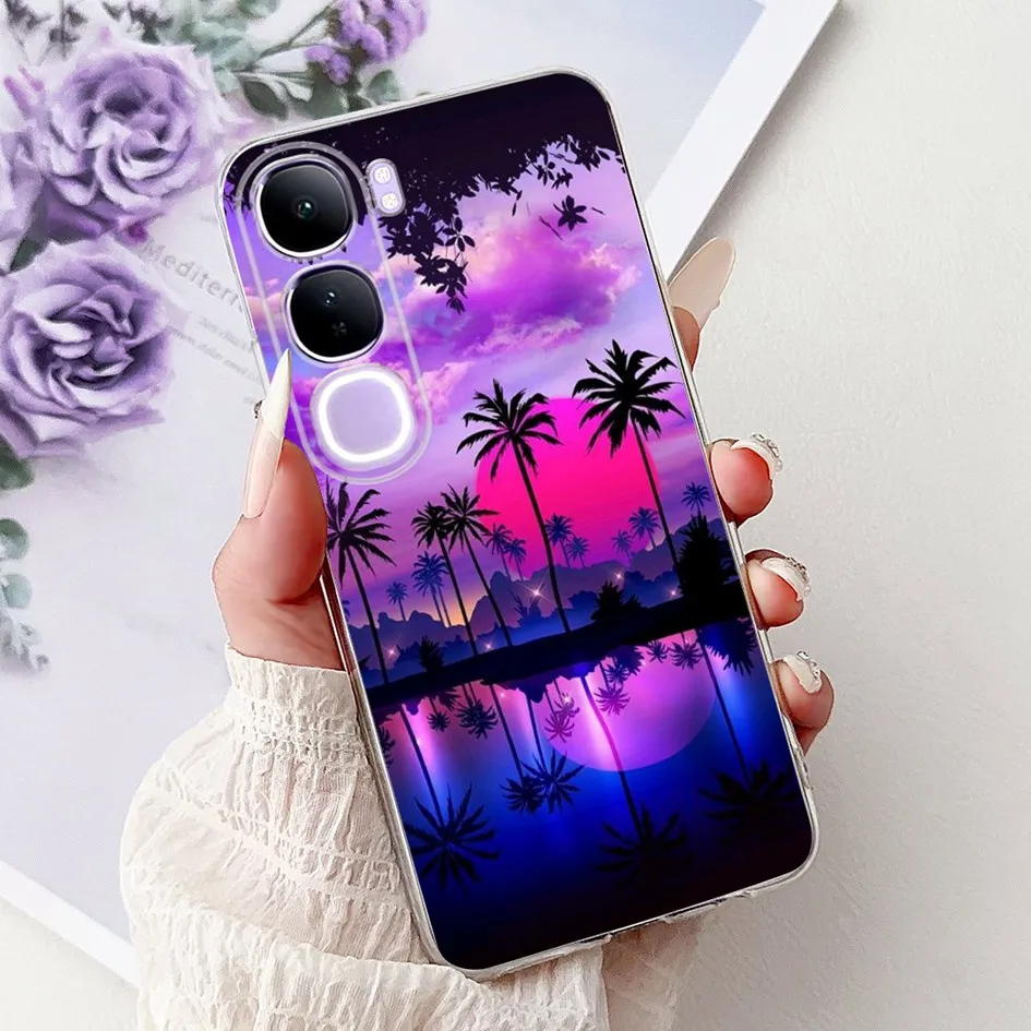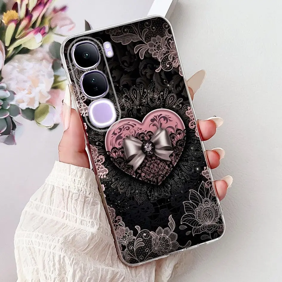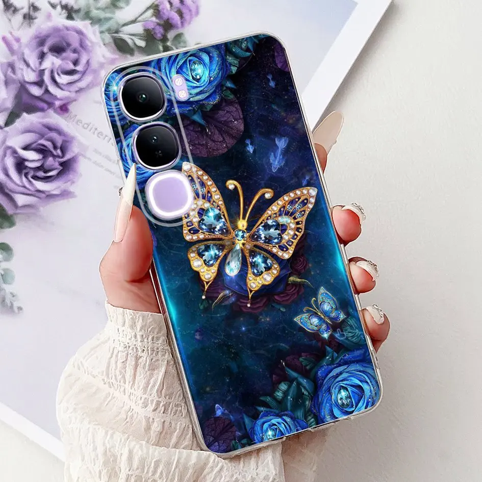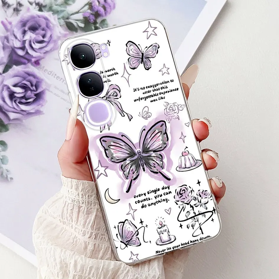 Comprar Para Vivo V40 Lite (IDN) V2417 funda de silicona 6,67 "funda de teléfono transparente de TPU con flores a la moda para Vivo V40 Lite 4G Y200 5G V40Lite Etui