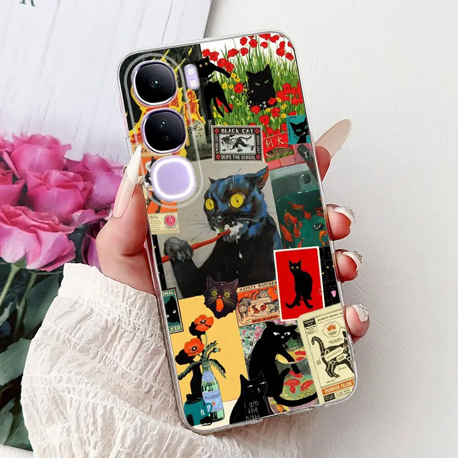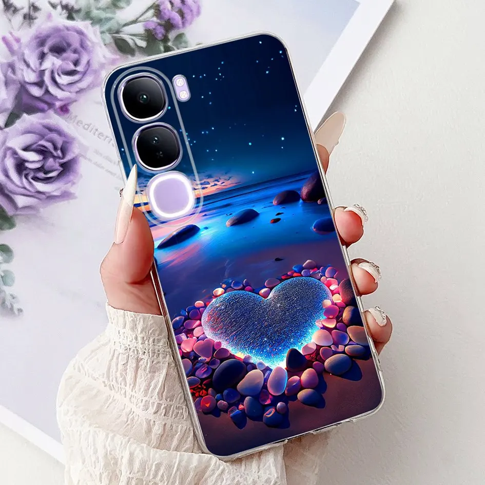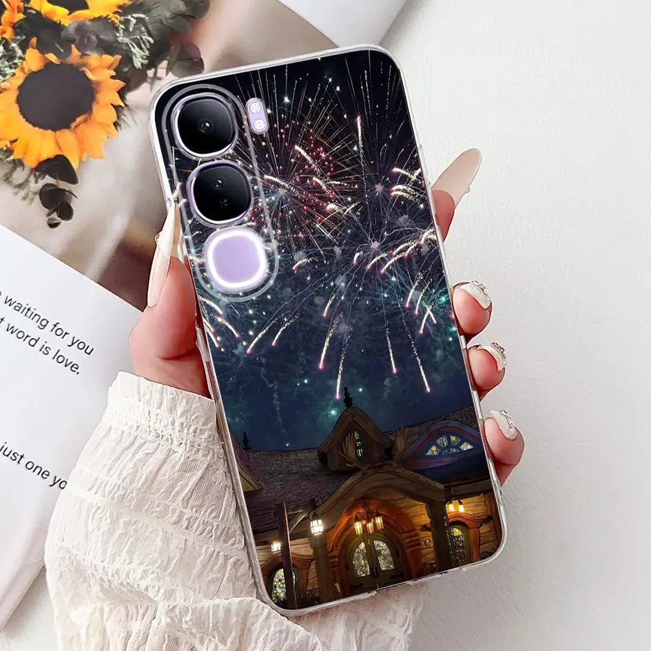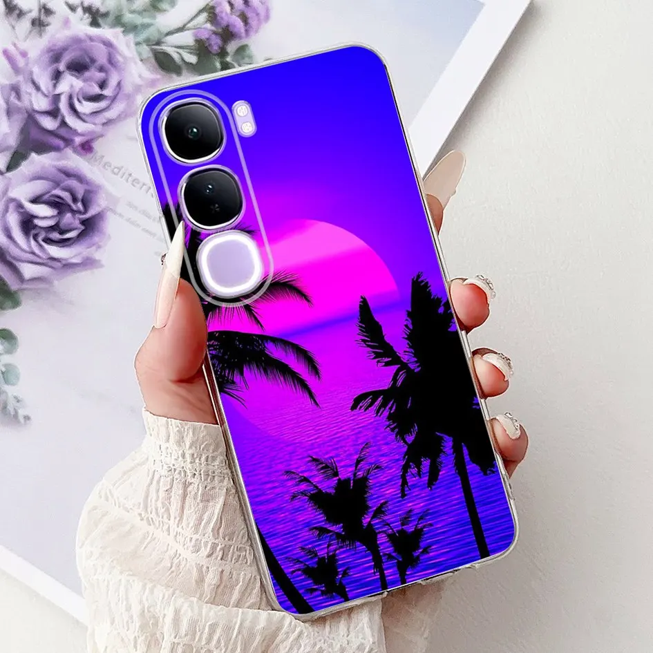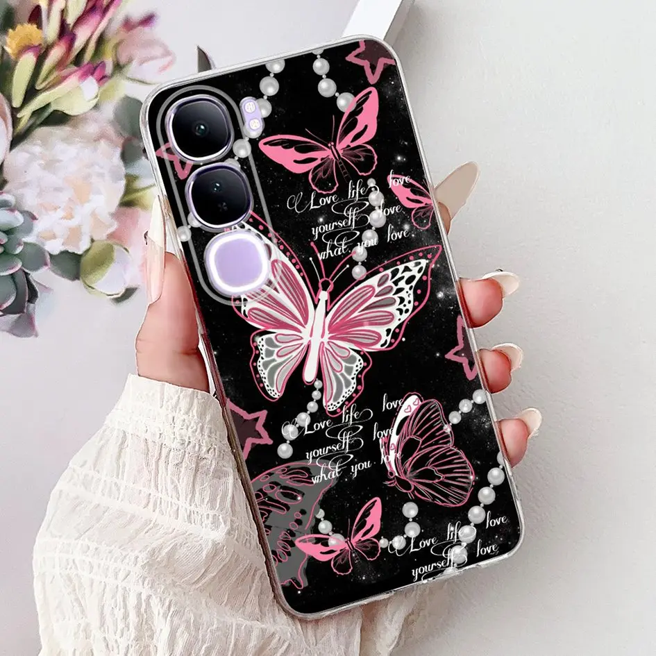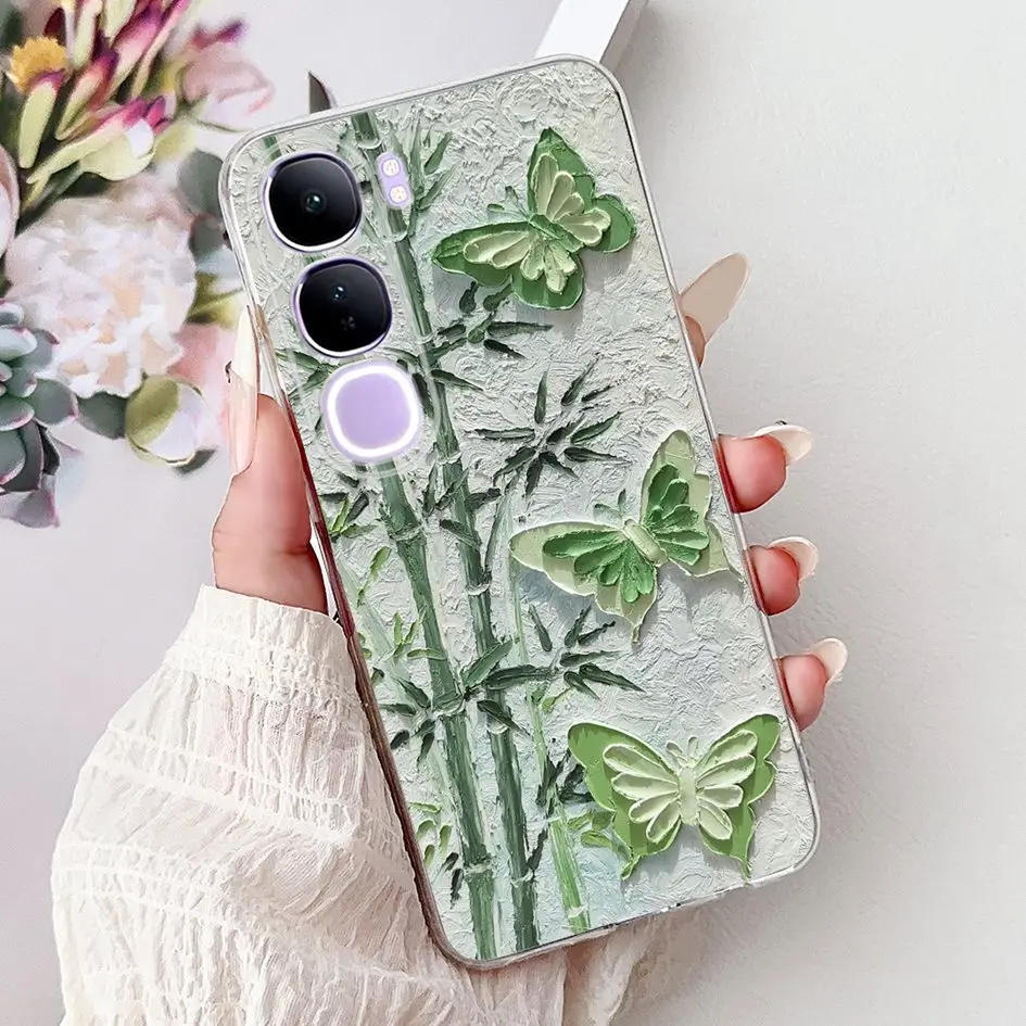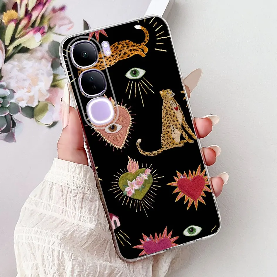 Comprar Para Vivo V40 Lite (IDN) V2417 funda de silicona 6,67 "funda de teléfono transparente de TPU con flores a la moda para Vivo V40 Lite 4G Y200 5G V40Lite Etui