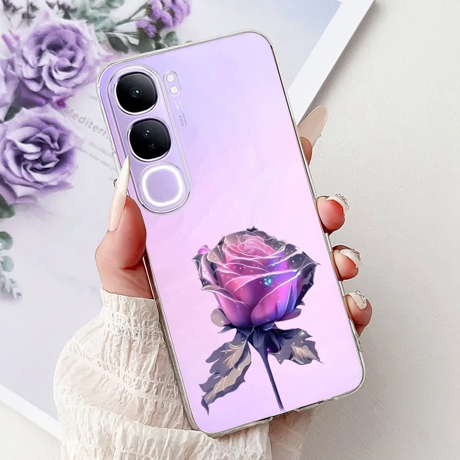 Para Vivo V40 Lite (IDN) V2417 funda de silicona 6,67" moda flor transparente TPU funda de teléfono para Vivo V40 Lite 4G Y200 5G V40Lite Etui