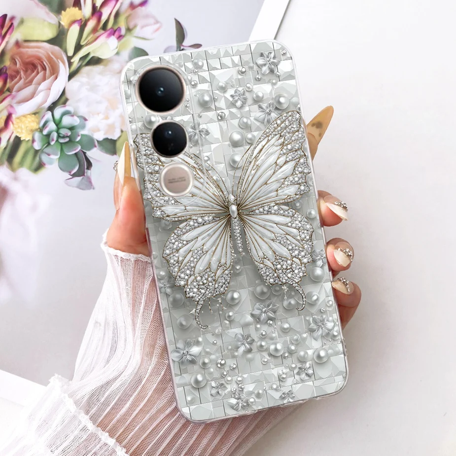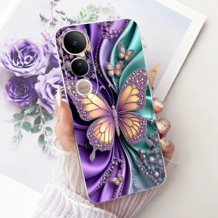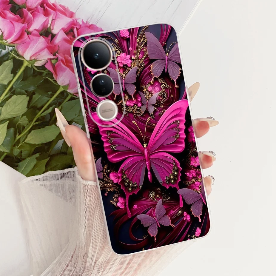 Para Vivo V50 Lite 4G 5G funda V2441 elegante cubierta pintada de mariposa funda de teléfono delgada suave para Vivo V50 5G V2427 V 50 V50Lite Shell