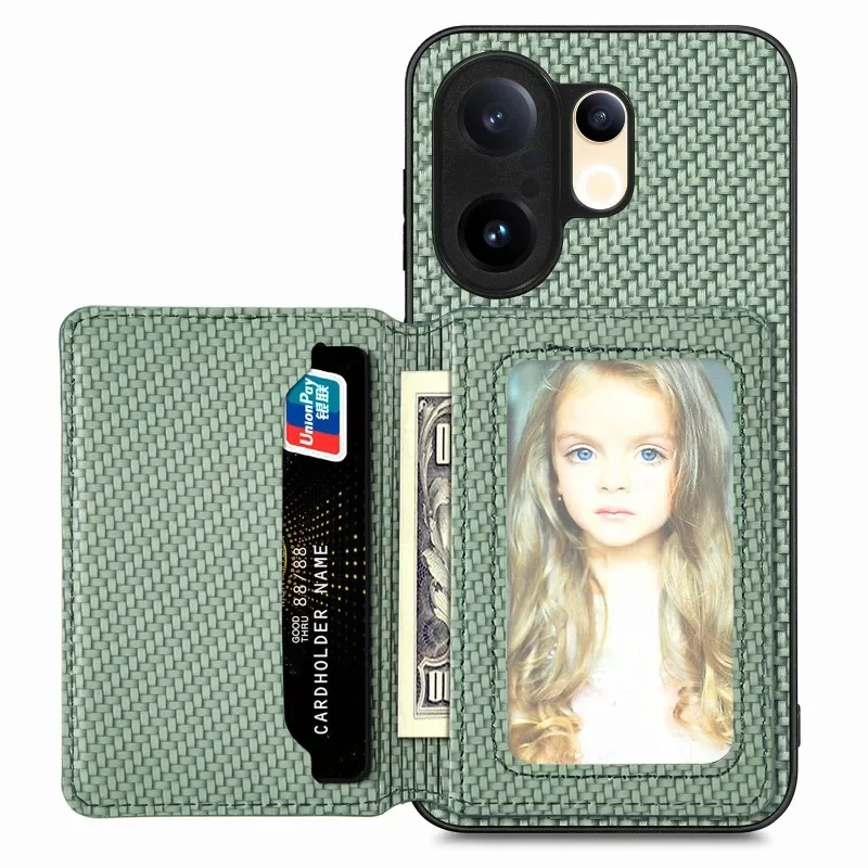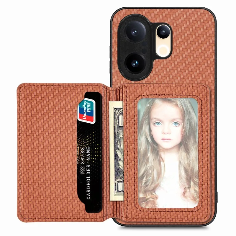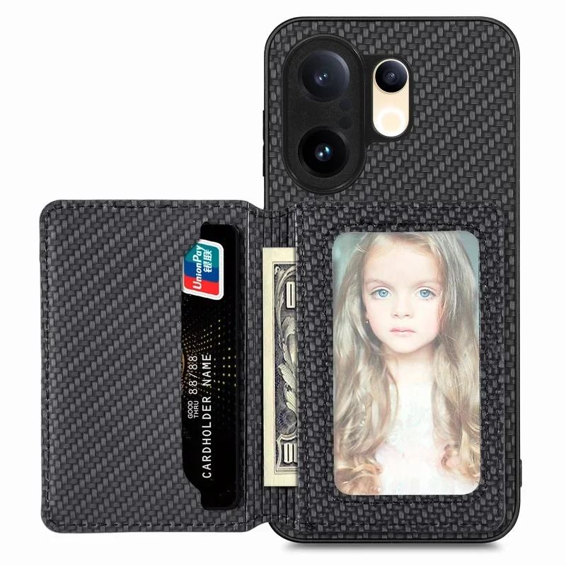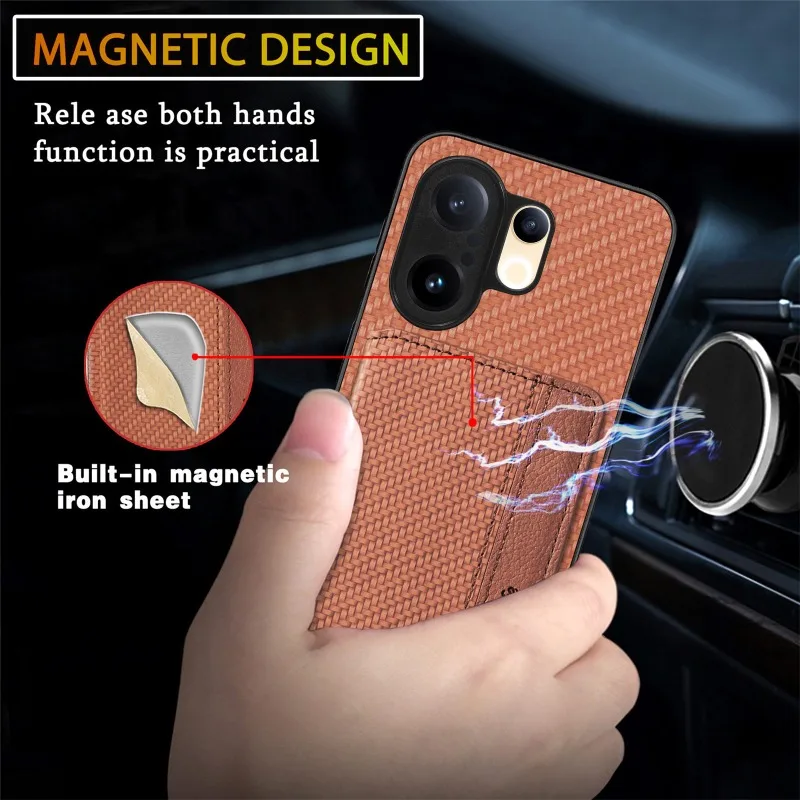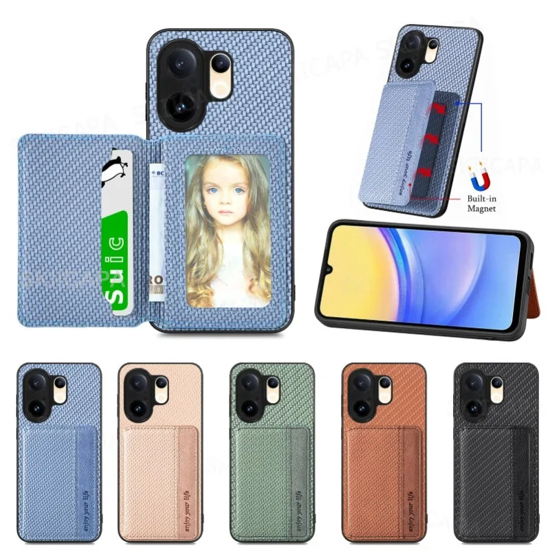 Para VIVO X200 FE imán cartera tarjetero Funda de cuero para VIVO S30 Pro Mini fibra de carbono Flip cuero cubierta con soporte magnético