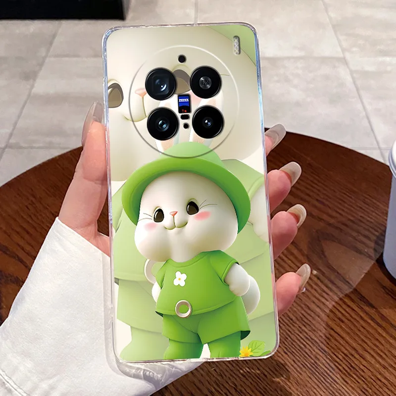 Para Vivo X200 Pro carcasa transparente lindo conejo de amor patrón divertido TPU cubierta trasera suave para Vivo X200Pro X200 X 200 Pro 5G funda de teléfono
