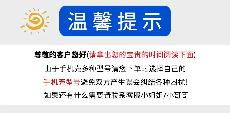 4. Dado que cada modelo de funda de teléfono es diferente, realice un pedido de acuerdo con su teléfono para evitar errores de compra. Gracias por su cooperación y le deseamos una vida feliz.