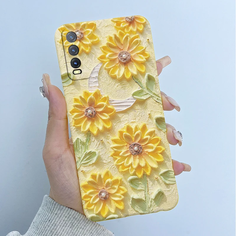 Comprar Para Vivo Y11s Y12s Funda V2028 V2026 V2033 Funda trasera de silicona con flores coloridas para Vivo Y20 Y20i Y20s Y20G V2029 V2027 V2032 Funda