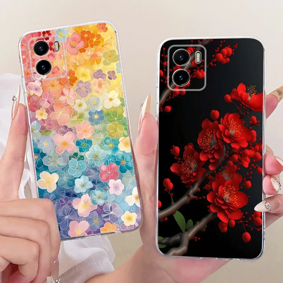 Para Vivo Y15a funda Vivo Y15s V2120 V2147 V2139 funda pintada de flores de lujo funda de silicona suave para Vivo Y01 V2166 Y 15a 15s bolsas