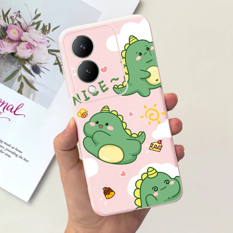 Para Vivo Y17s 4G funda bonita de dibujos animados de dinosaurio funda de teléfono de silicona suave para Vivo Y17s Y 17 s VivoY17s funda trasera de 6,56 ''Shell